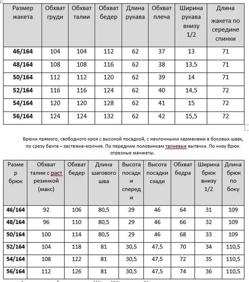 Размеры: 46, 48, 50, 52, 54, 56