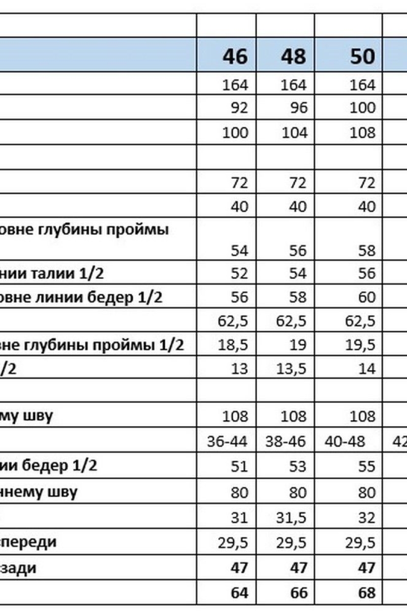Размеры: 46, 48, 50, 52, 54, 56, 58