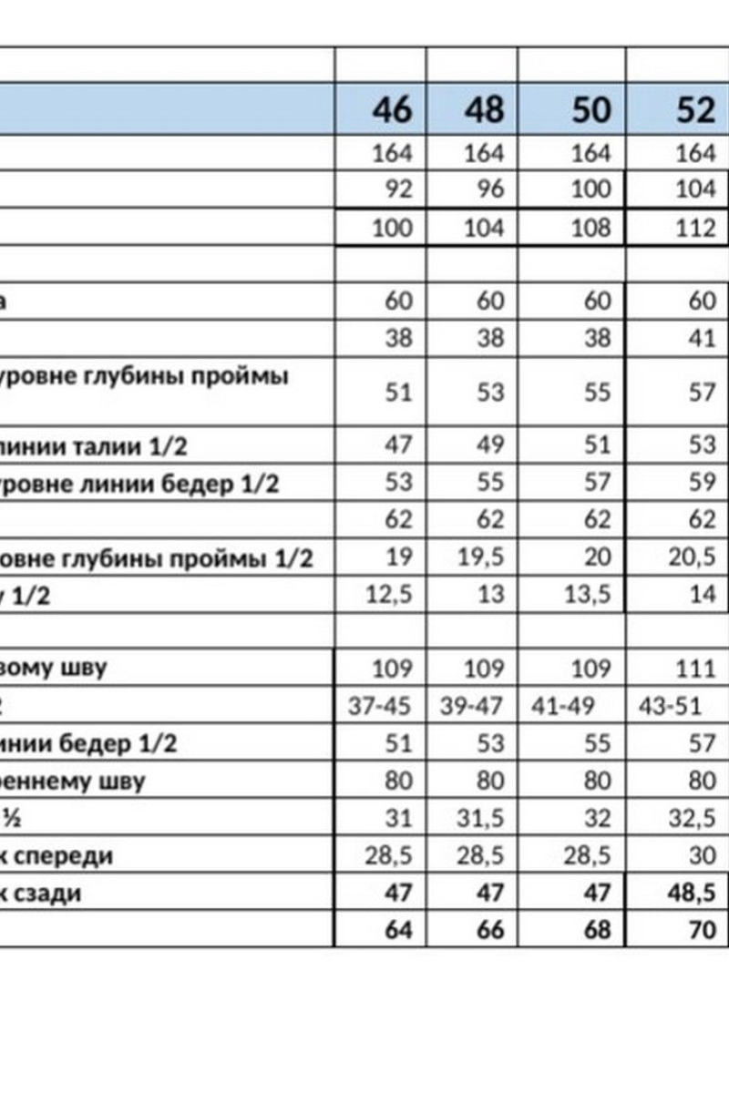 Размеры: 48, 50, 52, 54, 56, 58, 60, 62
