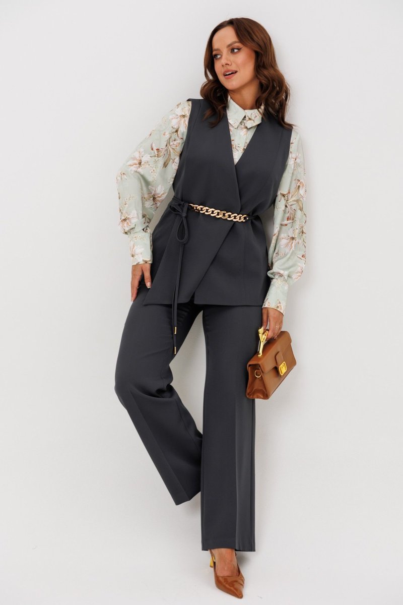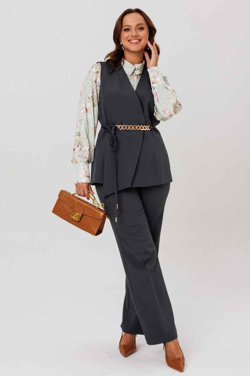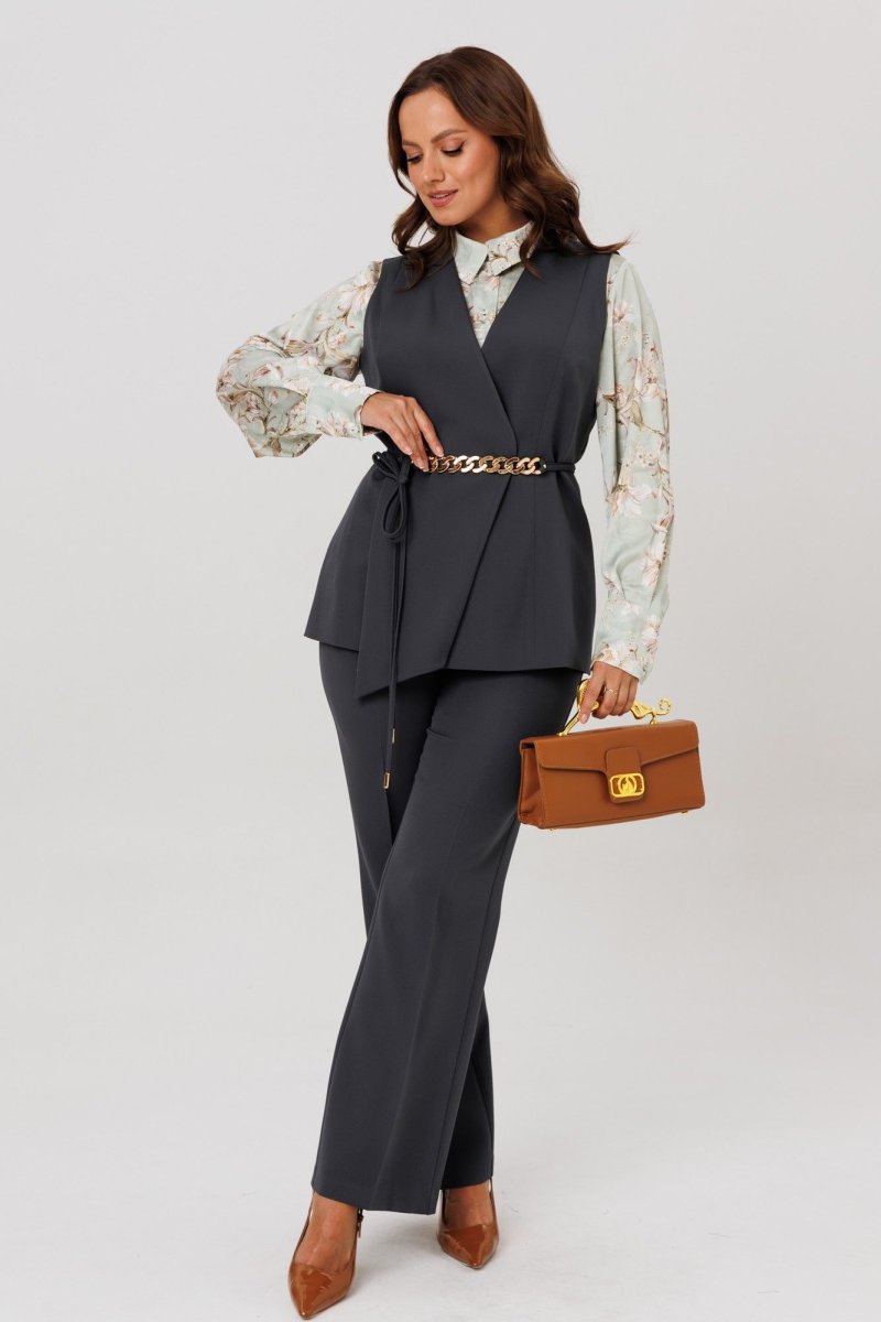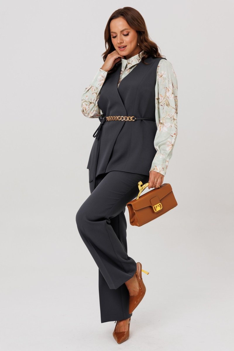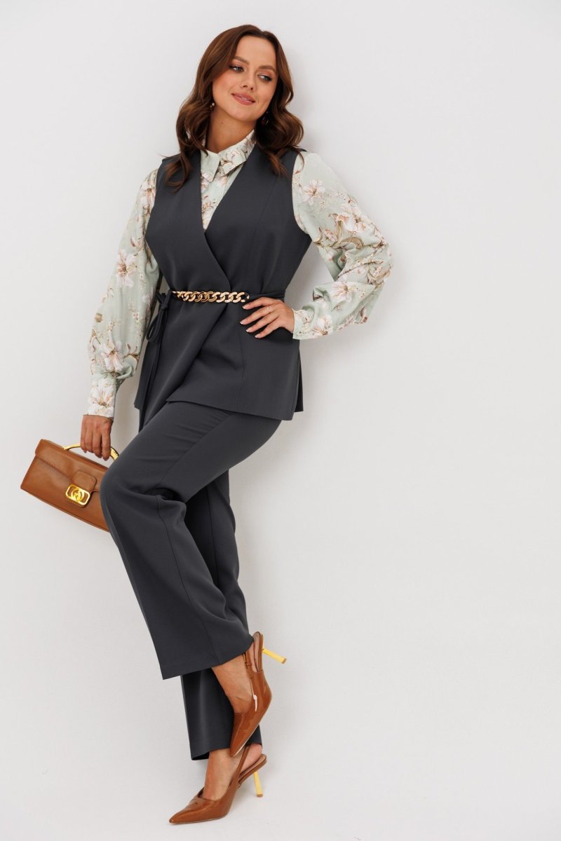Комплект женский, состоящий из жилета, блузы и брюк.