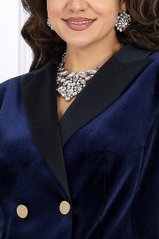Этот костюм — воплощение классики вечерней моды и станет незаменимым вариантом для женщин, которые ищут стильный и одновременно комфортный наряд на торжество. Воротник и лацканы из сатина придают изделию утонченный и благородный вид, что делает его подходящим для новогоднего корпоратива, свадьбы или юбилея. Высококачественные материалы и продуманное лекало обеспечивают не только привлекательный внешний вид, но и максимальный комфорт. Такой костюм идеально подойдет для полных женщин, которые ценят элегантность и удобство.