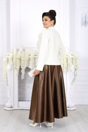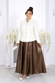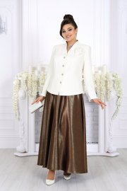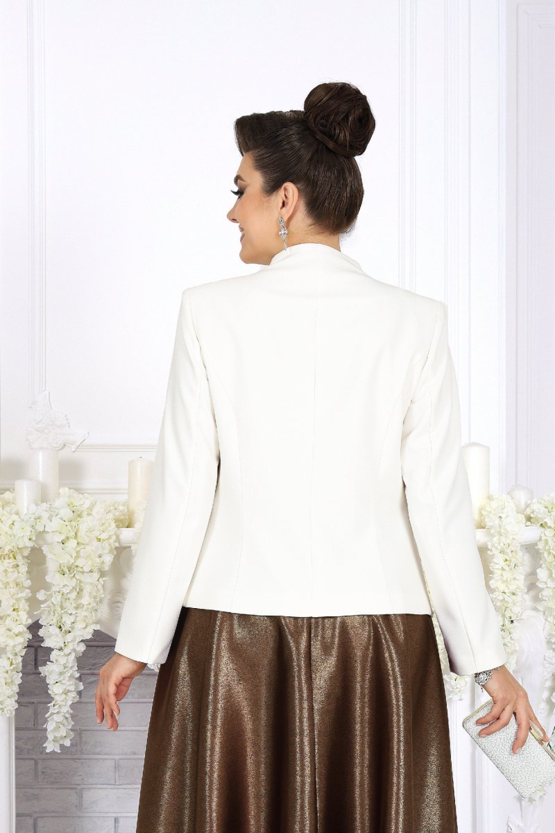 Когда нужно выступить в образе, где каждая деталь говорит о вкусе и статусе, этот комплект — точное попадание. Сочетание белого жакета и блестящей, струящейся юбки создаёт впечатление утончённой роскоши, а продуманный крой обеспечивает комфорт и свободу движений на всё мероприятие.