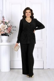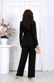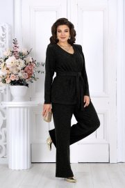 Элегантный брючный комплект – идеальный выбор для праздника, вечера в ресторане или важного мероприятия. Жакет с выразительным V-образным вырезом и аккуратными складками по линии талии подчёркивает женственный силуэт, а сияющая ткань с люрексом придаёт образу динамику и мягкость, создавая гармоничное сочетание классики и современности.