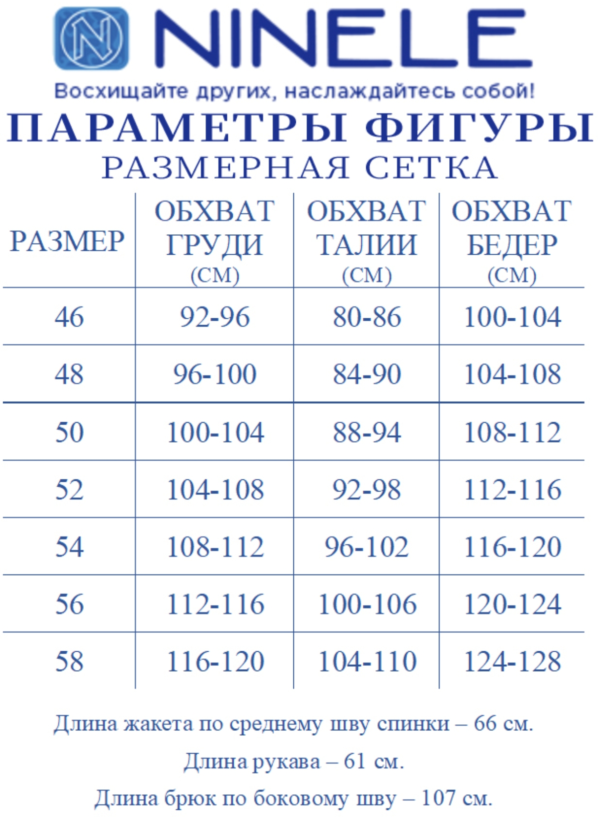Таблица размеров