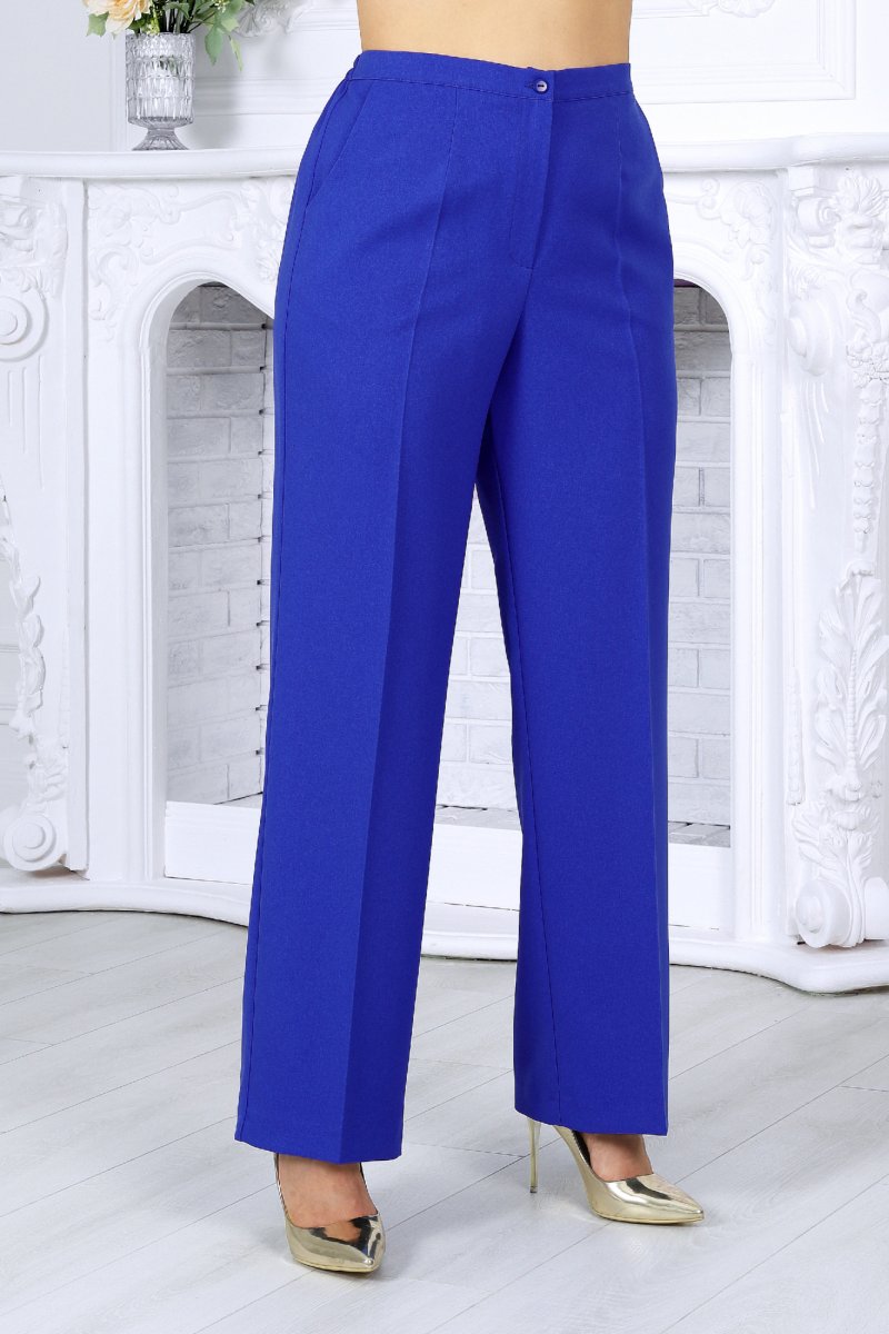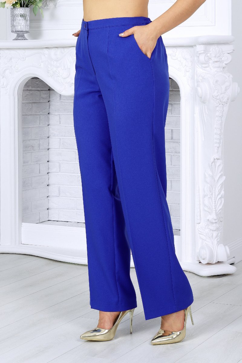 Брюки классические, с кантами и посадкой на талии, выполнены из костюмной поливискозы. Модель с центральной застёжкой на тесьму-«молнию», на притачном поясе, застегивающемся на петлю и пуговицу. Передние и задние половинки брюк с талиевыми вытачками, направленными от пояса вниз. Спереди обработаны боковые наклонные карманы. Для лучшего прилегания брюк в области талии в поясе по задним половинкам вставлена эластичная лента. Длина брюк по боковому (с поясом)-107 см.