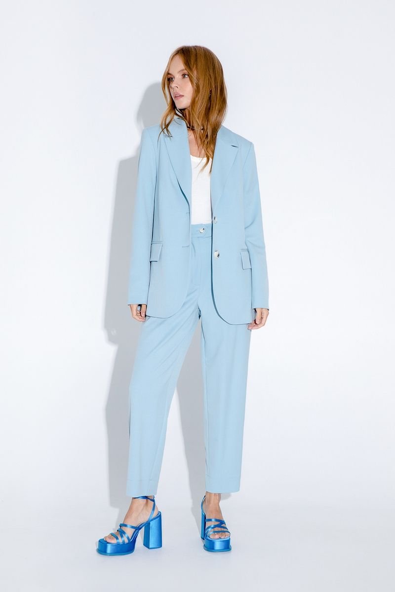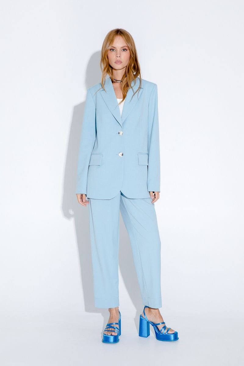 Текстильный костюм-двойка из свободного жакета со шлицами и брюк со складками