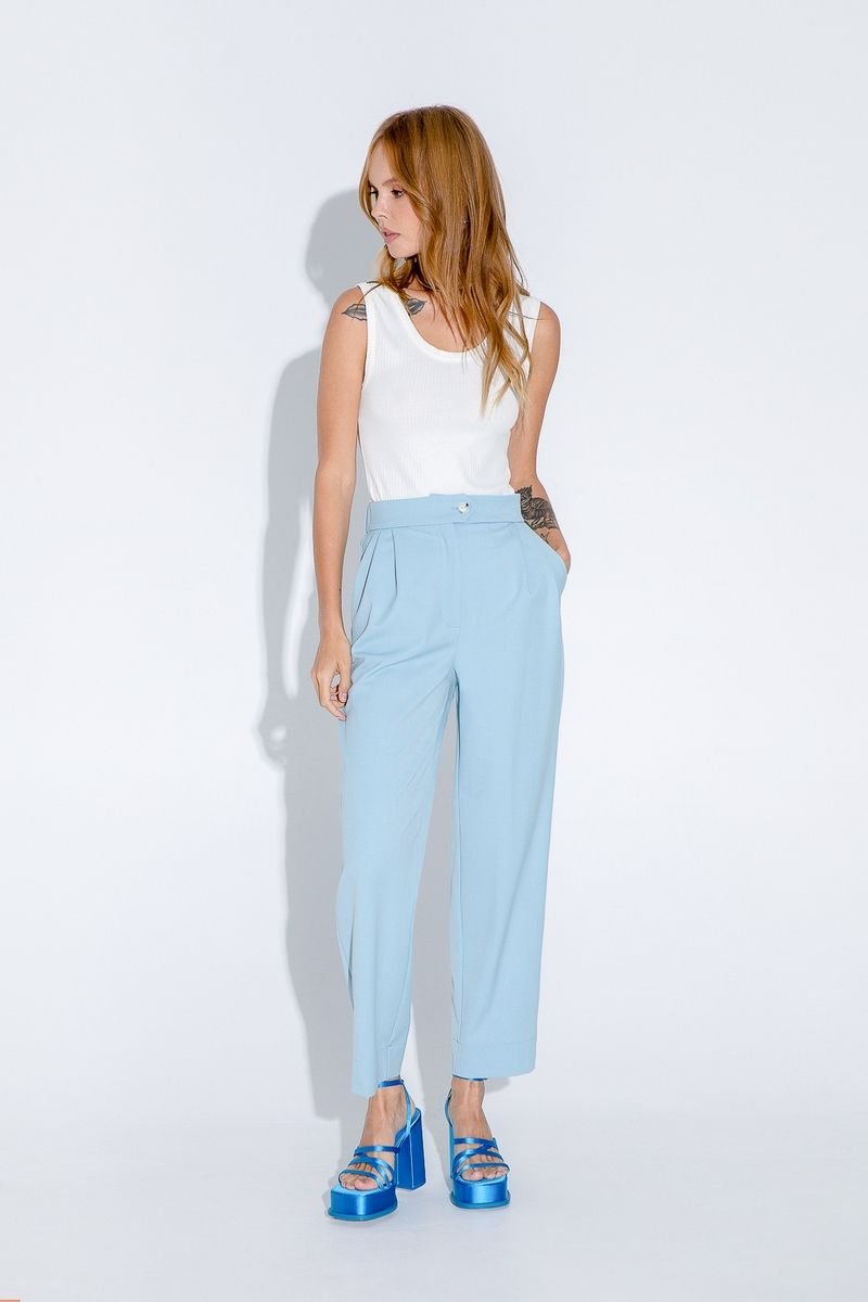 Длина брюк по боковому шву с поясом около 99,5 см в размерах 40-46 и около 101 см в размерах 48-52, длина по внутреннему шву около 70 см