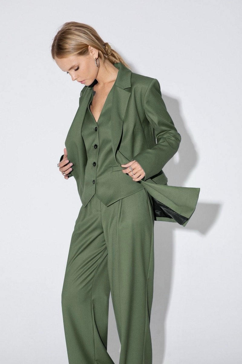 Длина жакета по спинке около 68/71 см, длина рукава около 61 см. Длина жилета по спинке около 48,5/51,5 см. Длина брюк по боковому шву с поясом около 113/114,5 см.