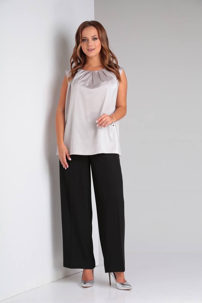 Топ свободного покроя из блузочной однотонной ткани. По горловине переда складки. По спинке разрез-застежка в виде капли. В боковых швах разрезы.