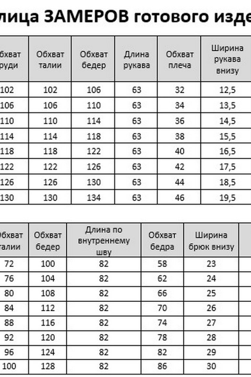 Таблица размеров