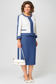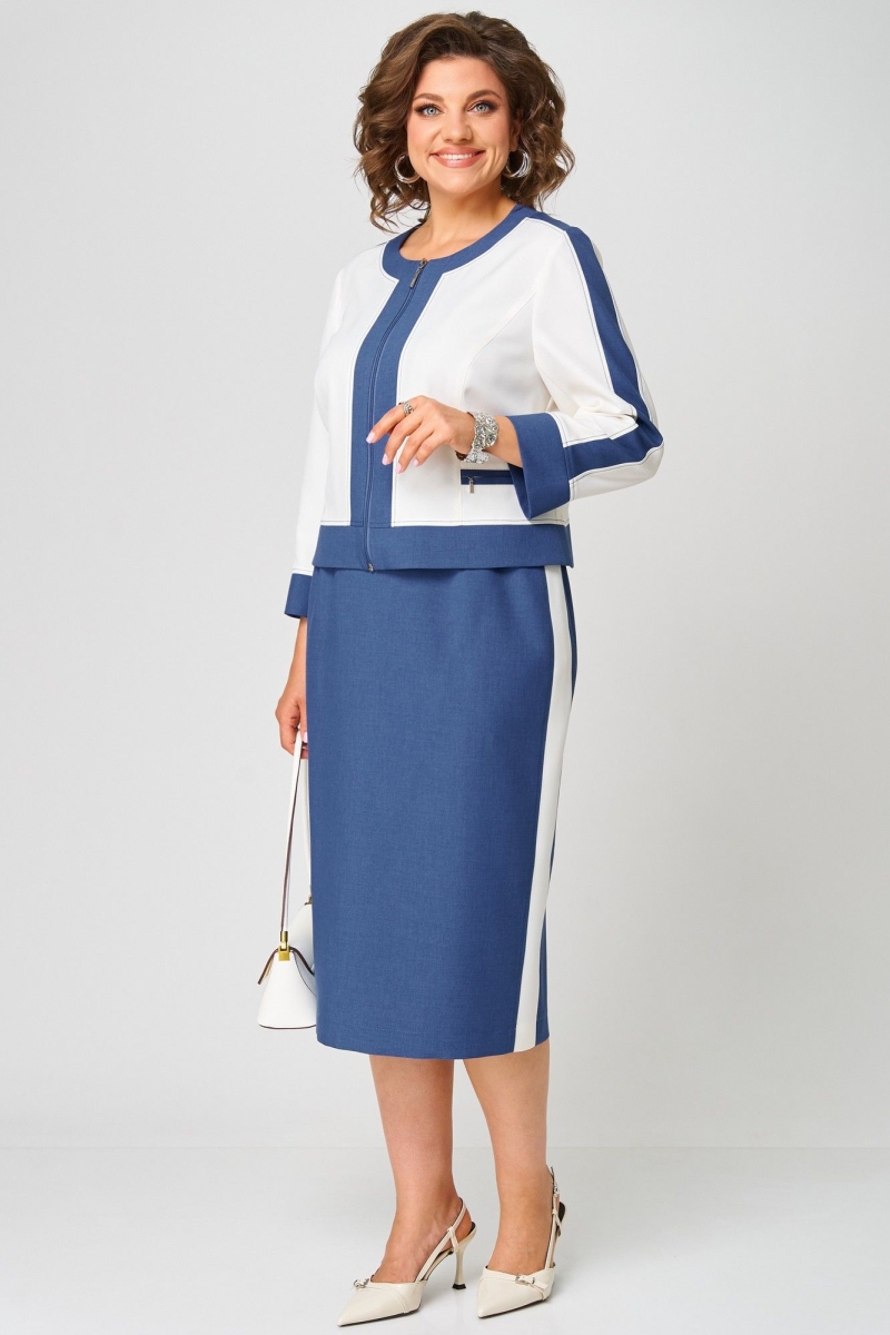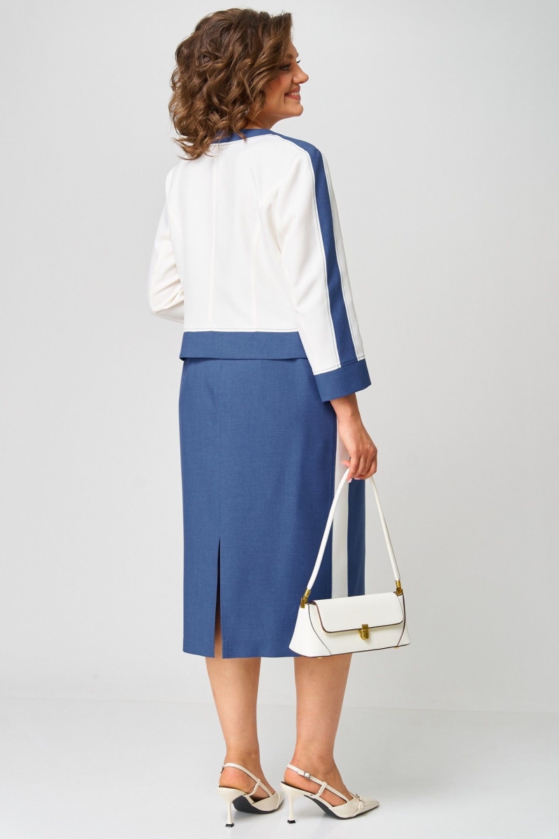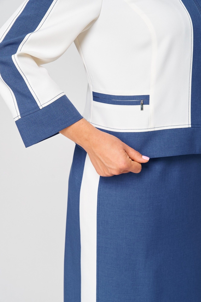 Оригинальный костюм, станет отличным дополнением к Вашему осеннему гардеробу. Данный комплект станет отличным вариантом для повседневных образов, а также для работы в офисе. Костюм двух-предметный, состоящий из жакета и юбки. Жакет с декоративной контрастной отделкой, прямого силуэта с центральной застёжкой на молнию, горловина округлой формы. По переду жакета рельефы, декоративные листочки с имитацией кармана с застежкой. Спинка жакета со средним швом и рельефами. Рукав втачной, с совставкой из контрастной ткани. Жакет без подкладки. Юбка классическая на подкладке, слегка зауженная к низу. В боковых швах контрастные свтавки. среднем шве заднего полотнища застежка потайная молния и разрез. Для максимально комфортной посадки по бокам пояса вставлена эластичная резинка.