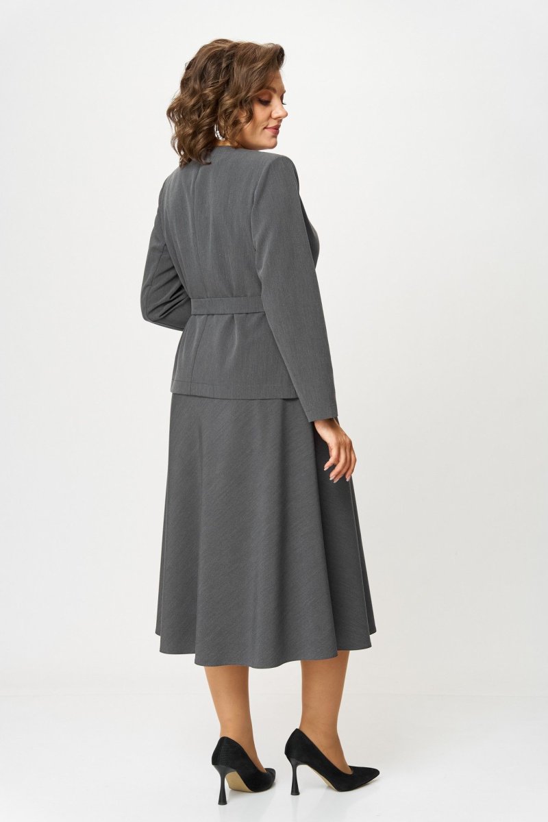 Костюм состоит из жакета и юбки. Костюм выполнен из однотонной ткани, жакет без подкладки.