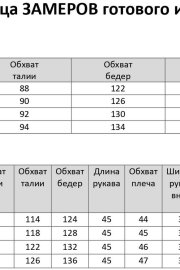 | Размер | Обхват груди (см) Грудь | Обхват талии (см) Талия | Обхват бедер (см) Бедра |