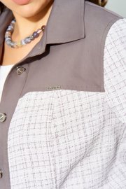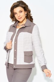 Комплект ""Деяна"" состоит из бомбера и джинсов. Бомбер полуприлегающего кроя изготовлен из сочетания хлопковой джинсовой и твидовой тканей, без подкладки. Его однобортная застежка выполнена на петли и пуговицы, а планка борта отделана декоративными строчками. На передней части изделия расположены кокетка и рельефные швы, а также накладные карманы с клапанами, закрывающиеся на петли с пуговицами. Сзади также присутствует кокетка и рельефы. Рукава имеют втачной двухшовный покрой и оснащены манжетами с застежкой на пуговицы и петли. Воротник рубашечного типа с отложной стойкой, низ бомбера дополнен отрезным поясом с декоративной прострочкой. На кокетке переда, с левой стороны, расположена стильная нашивка. Джинсы представляют собой зауженные к низу брюки со средней посадкой. Они оснащены застежкой на молнию и пуговицы, а также карманом в боковом шве. Сзади пояс дополнен резинкой для удобной посадки. Этот стильный и молодежный комплект ""Деяна"" прекрасно подходит как для ношения в комплекте, так и в качестве отдельных элементов для создания разнообразных образов.