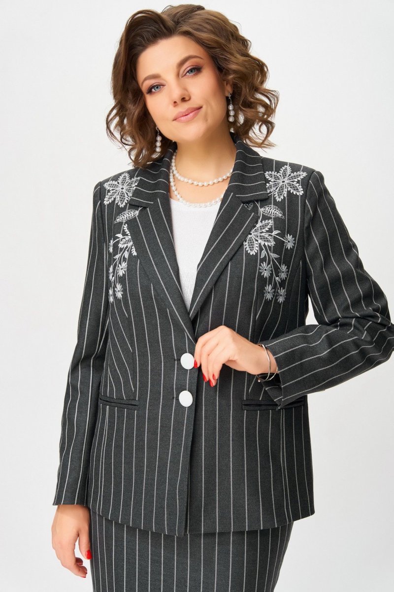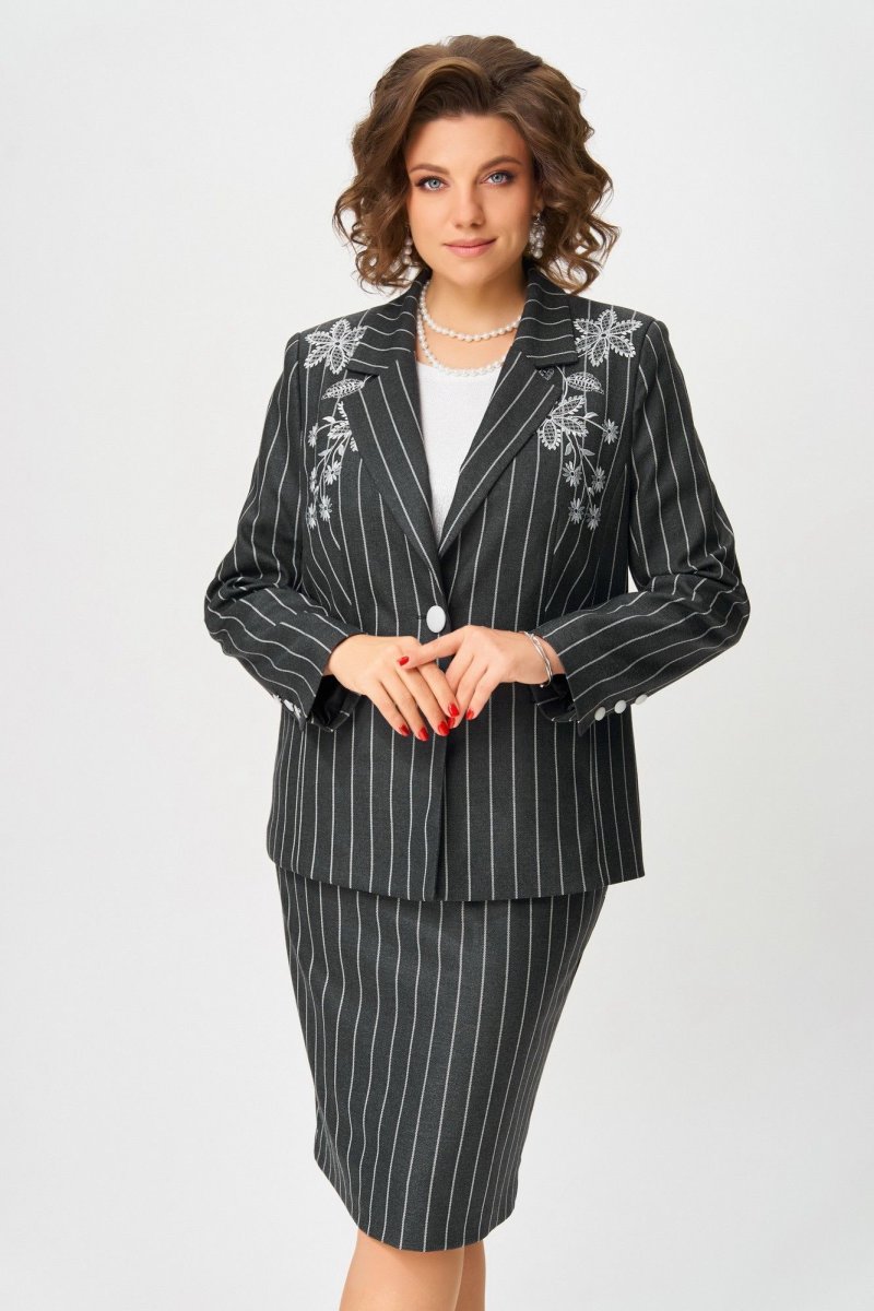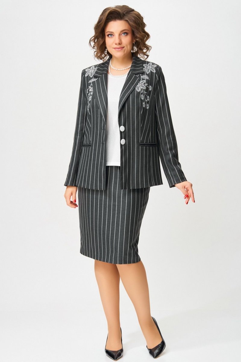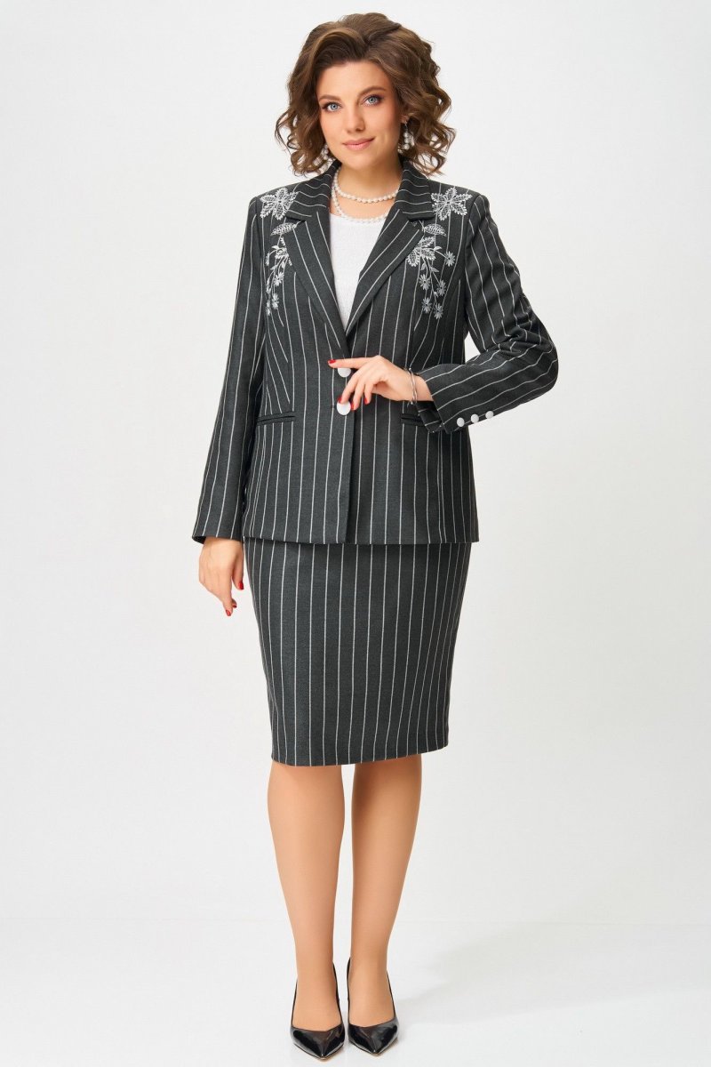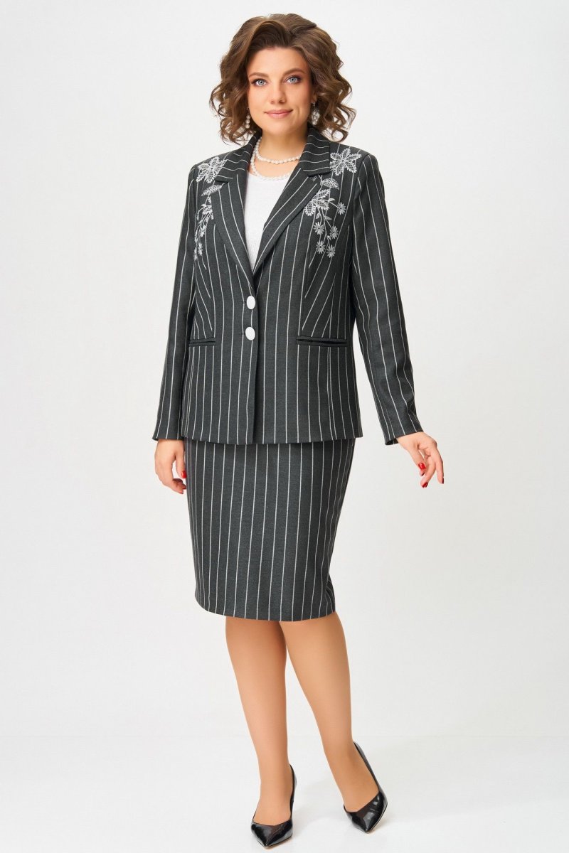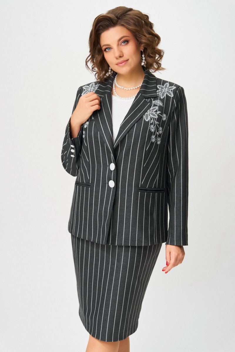 В целом, комплект «Веяна» — это синтез практичности и праздничности, в котором полоска задаёт стройность, а фактурные ткани и деликатные элементы раскрывают красоту в каждом движении. Он подойдёт и для торжественных событий, и для утончённых будней, где хочется быть собой — но чуточку прекраснее.
