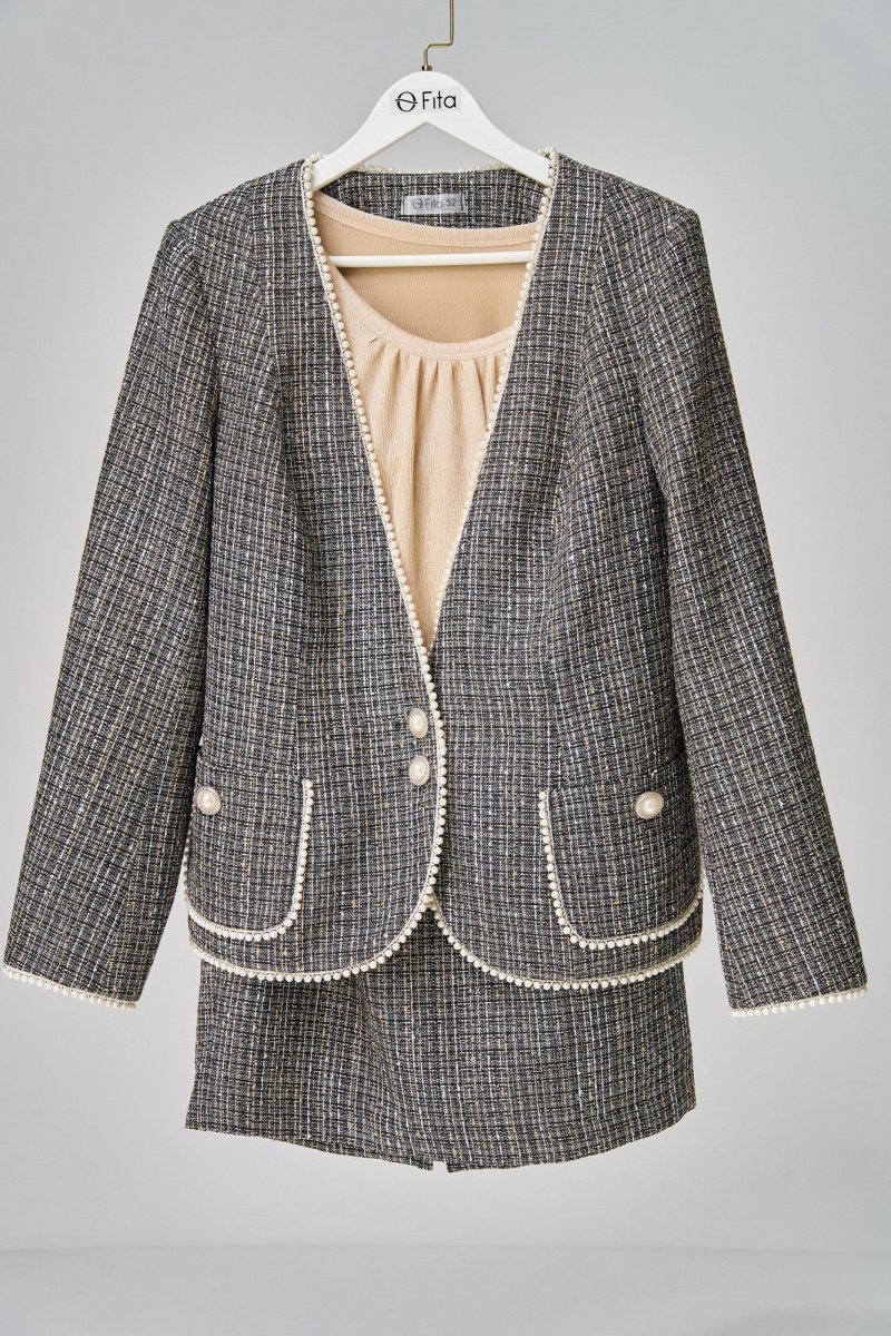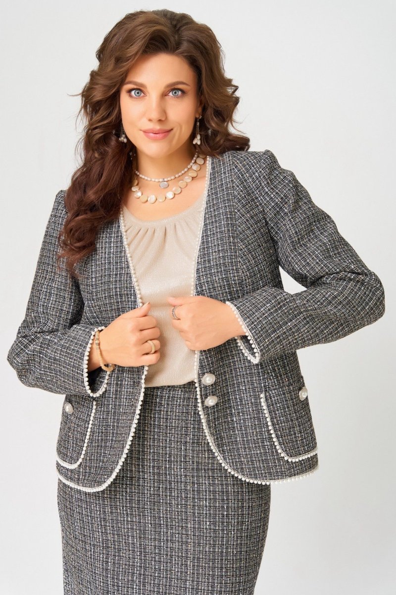 "Ясиня" — нарядная тройка, которая легко впишется в повседневность. Жакет, юбка и джемпер создают элегантный образ, подходящий как для торжеств, так и для рабочих будней. Стиль, комфорт и женственность — в каждой детали.