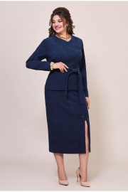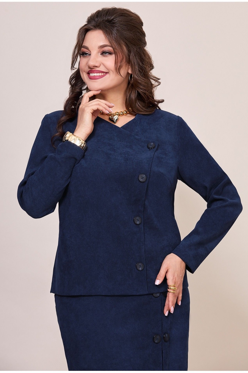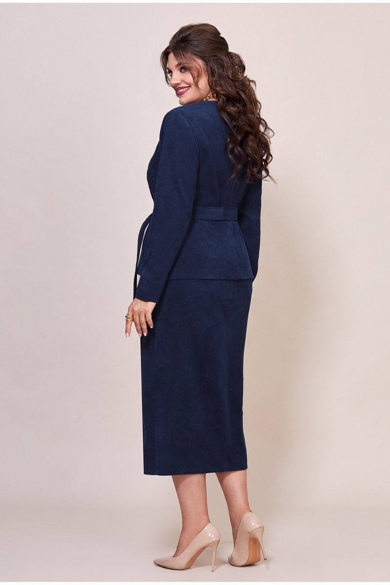 Элегантный, женский костюм полуприлегающего стиля, выполнен из штрукса, состоит из жакета и юбки. Жакет на подкладке, с ассиметричной застежкой на петли-пуговицы по переду. Также на полочке обработаны вытачки и жакет дополнен съемным поясом из основной ткани. Рукав втачной, длинный, спинка из основной ткани, со средним швом и рельефами. Юбка прямого покроя, из основной ткани, по переду обработан разрез и имитация планок, декорированы пуговицами. Заднее полотнище юбки с вытачками и средним швом, в среднем шве потайная молния, верхний срез обработан притачным поясом. Элегантный костюм отличный выбор для офиса, школы и других учреждений! В 52р Жакет: Ширина груди- 54см, Ширина талии -51см, Ширина бедер 58см, длина рукава- 61см., ширина рукава 19см. Юбка: Ширина талии -45см, Ширина бедер- 56см. Длина жакета 58см, длина юбки 80см.