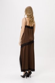 Детали: топ прямого силуэта, нагрудные вытачки, фигурный вырез по переду, отделка кружевом по верхнему и нижнему краю топа, регулируемые бретели. Юбка А-силуэта, асимметричная кокетка по переду, разрез с кружевной отделкой, юбка на обтачке с молнией по боку.