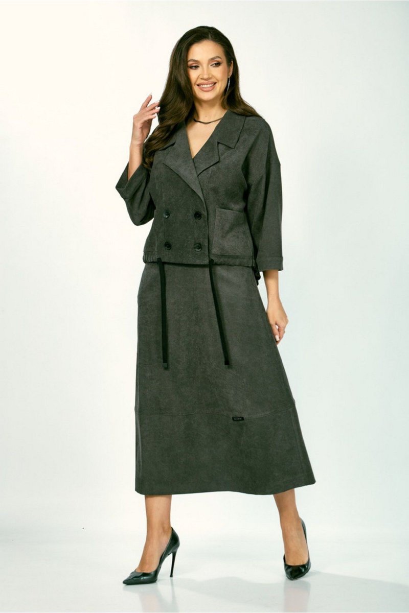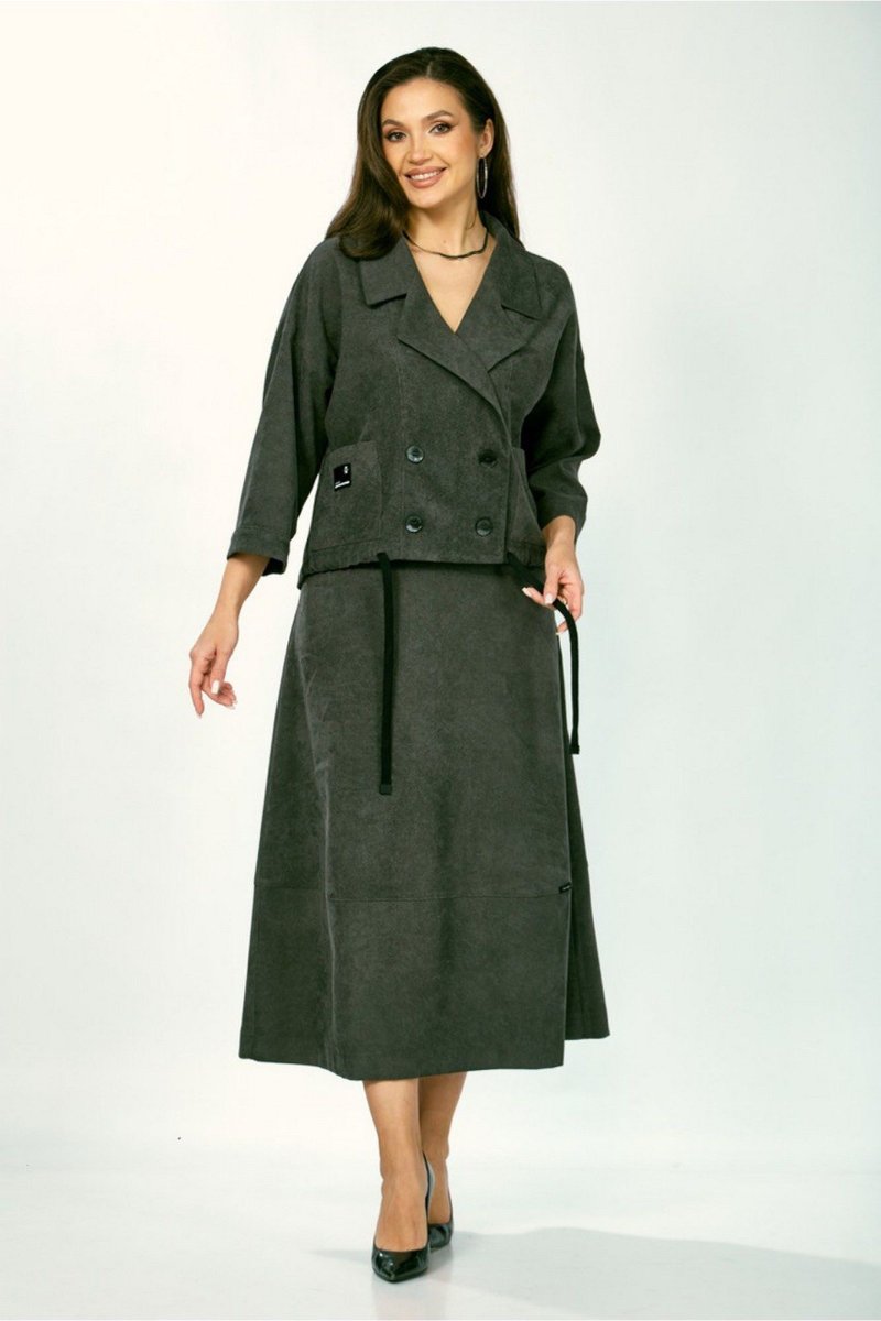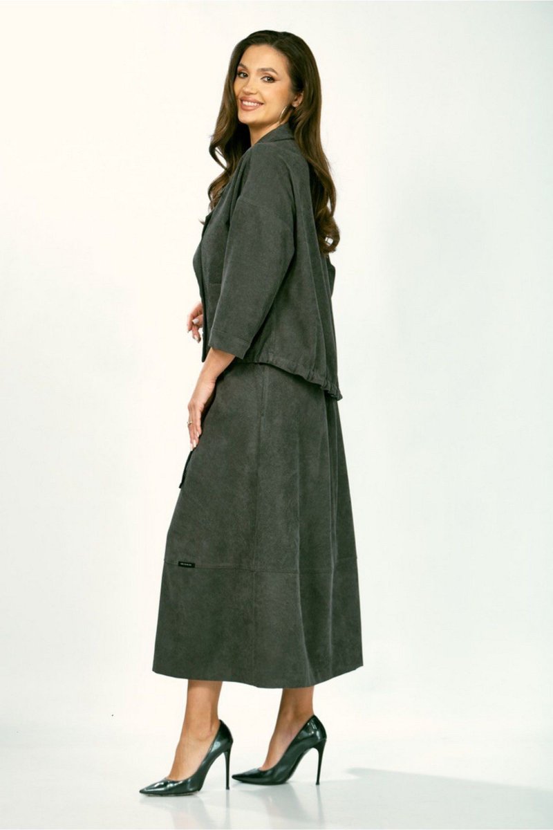 Раскошный женский костюм, состоящий из жакета и юбки из штруксовой ткани без подкладки легко впишется и в офисный и в casual гардероб.