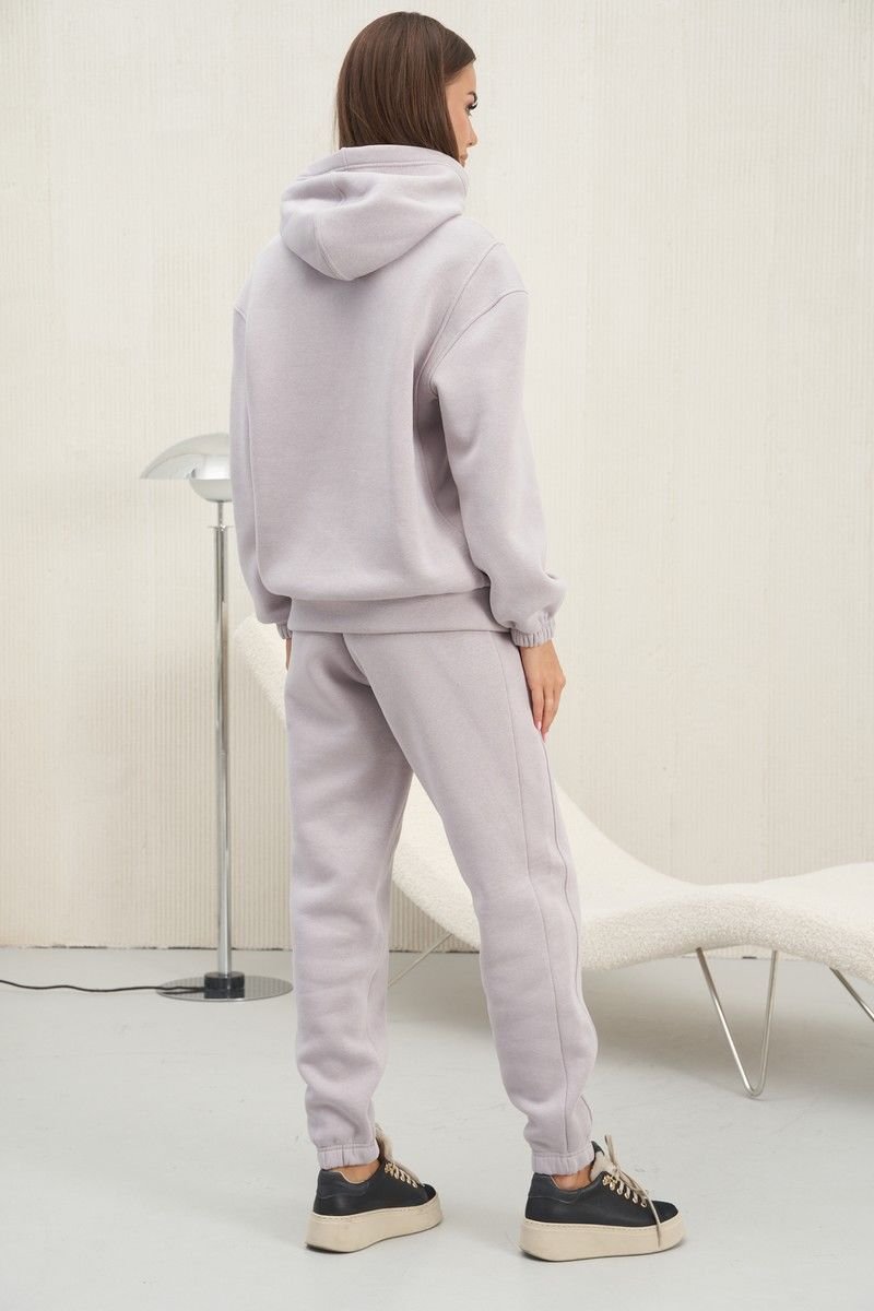 Спортивный костюм не собирается сдавать свои позиции и продолжает быть одним из самых востребованных видов одежды. Для холодного времени года непременно подойдет мягкий, уютный хлопковый трикотажный костюм с начесом. Худи свободное с оригинальными подрезами в области бокового шва и проймы и накладным карманом. Брюки джоггеры на эластичном поясе, с боковыми карманами. Длина рукава около 60 см. Длина худи около 67 см. Длина брюк около 98 см