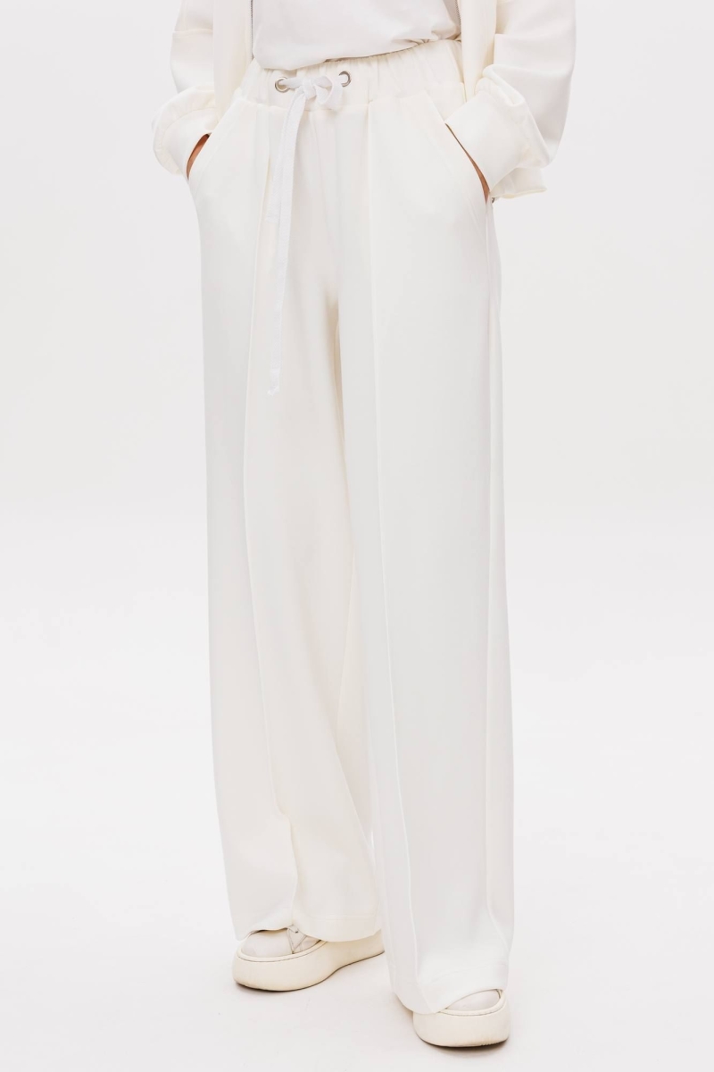 Брюки свободные с вертикальными защипами-""""стрелками"""" на передних половинках-визуально удлиняют и """"стройнят"""". предусмотрены боковые карманы. Пояс брюк с эластичной лентой и регулировкой на шнур спереди.