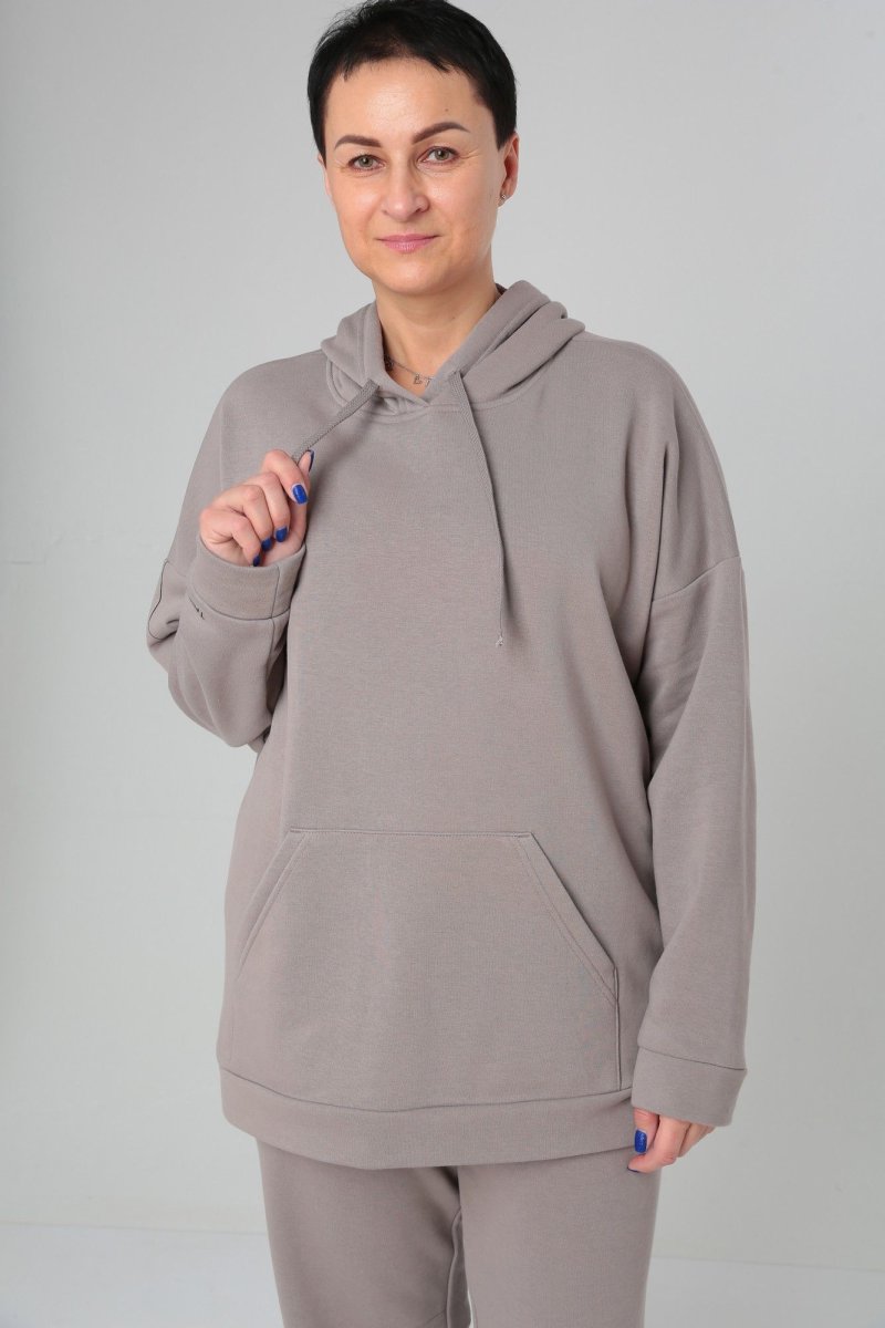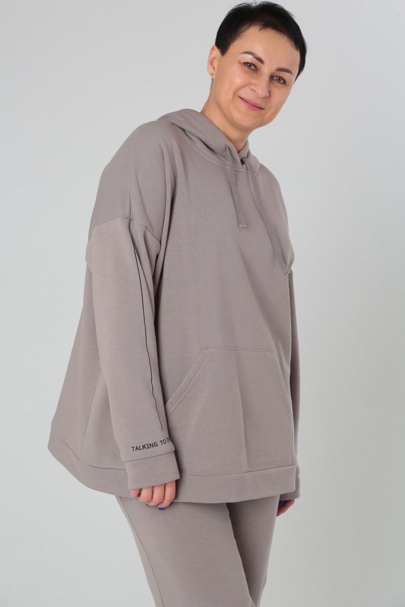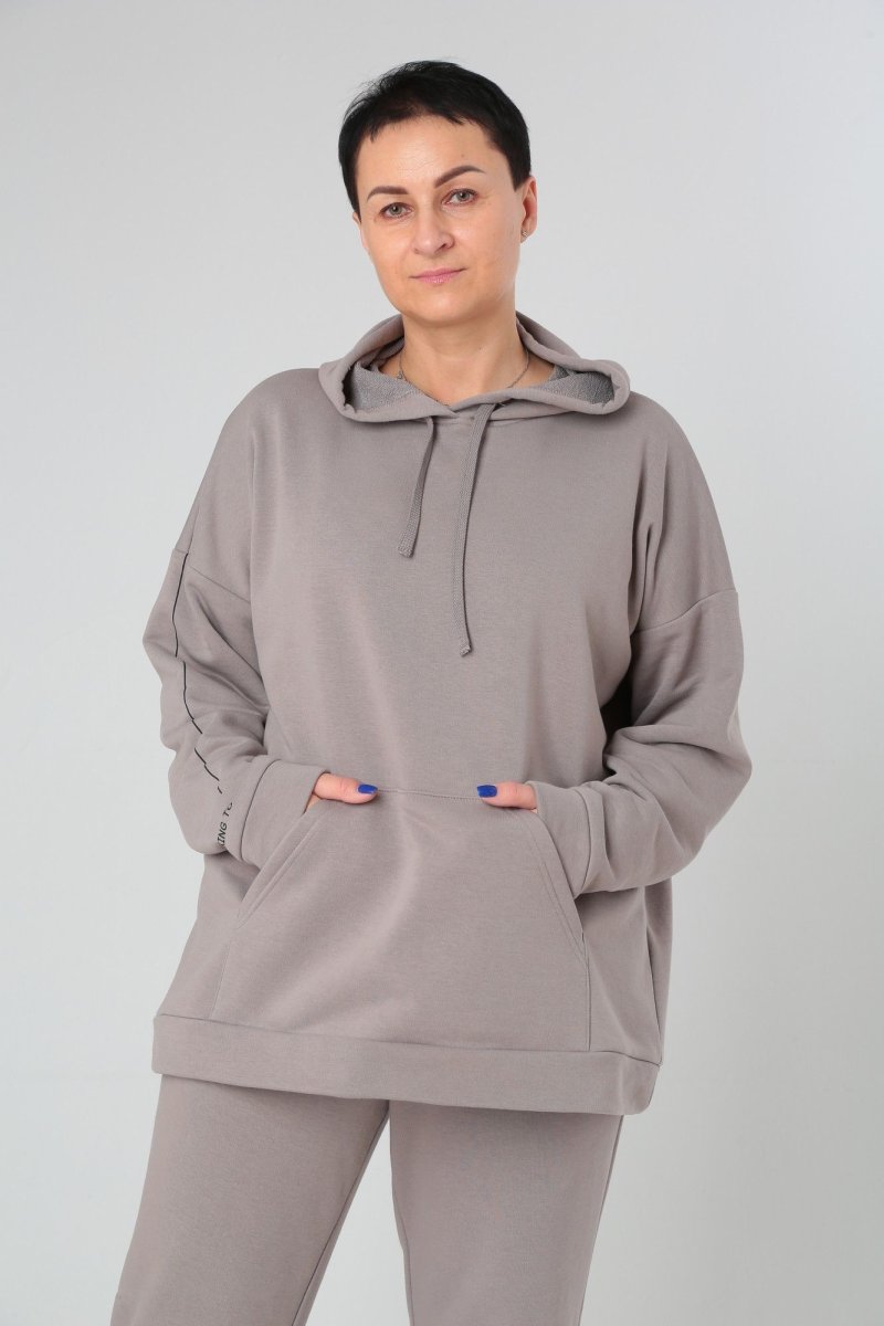 Толстовка худи свободного кроя с капюшоном.Рукав одношовный, втачной, на манжете.
