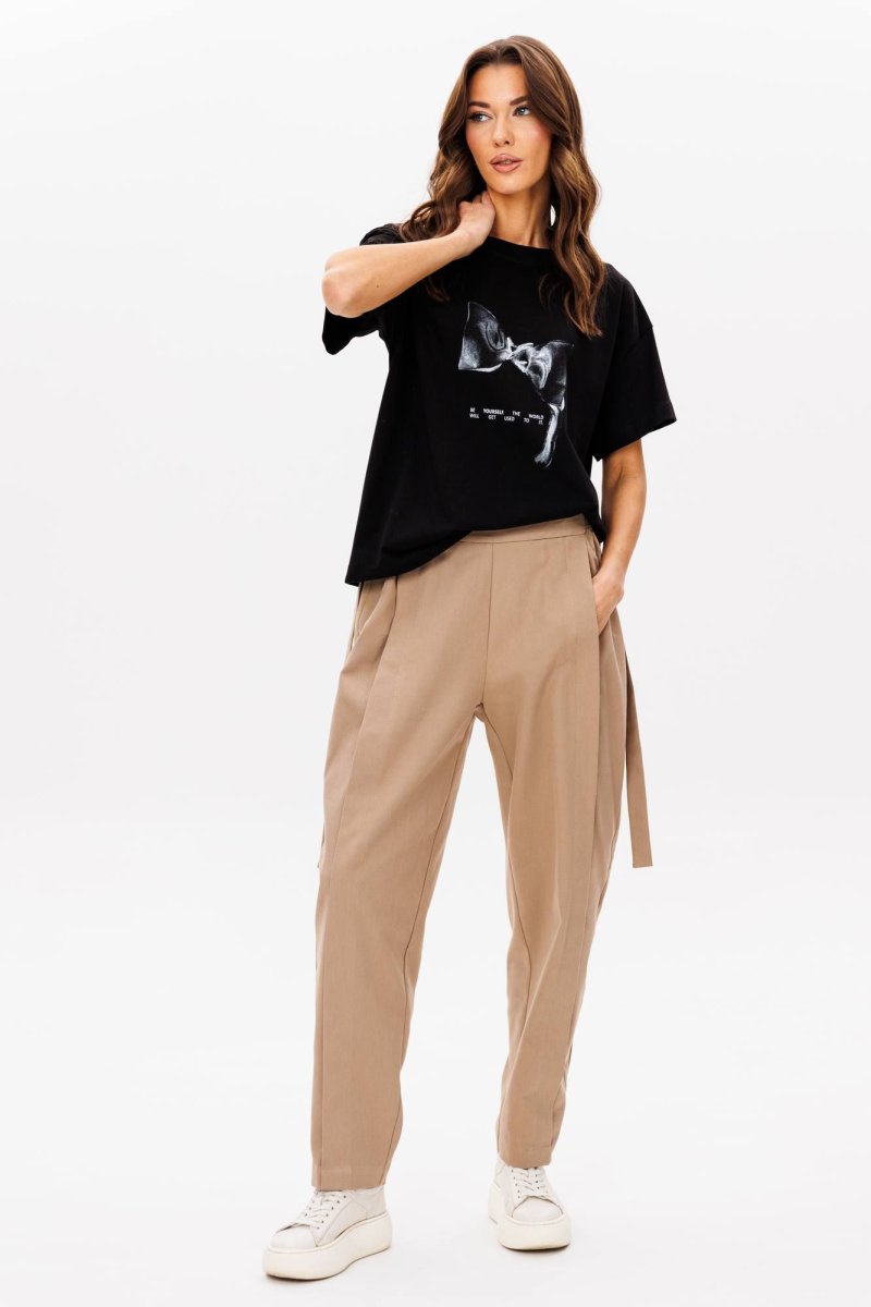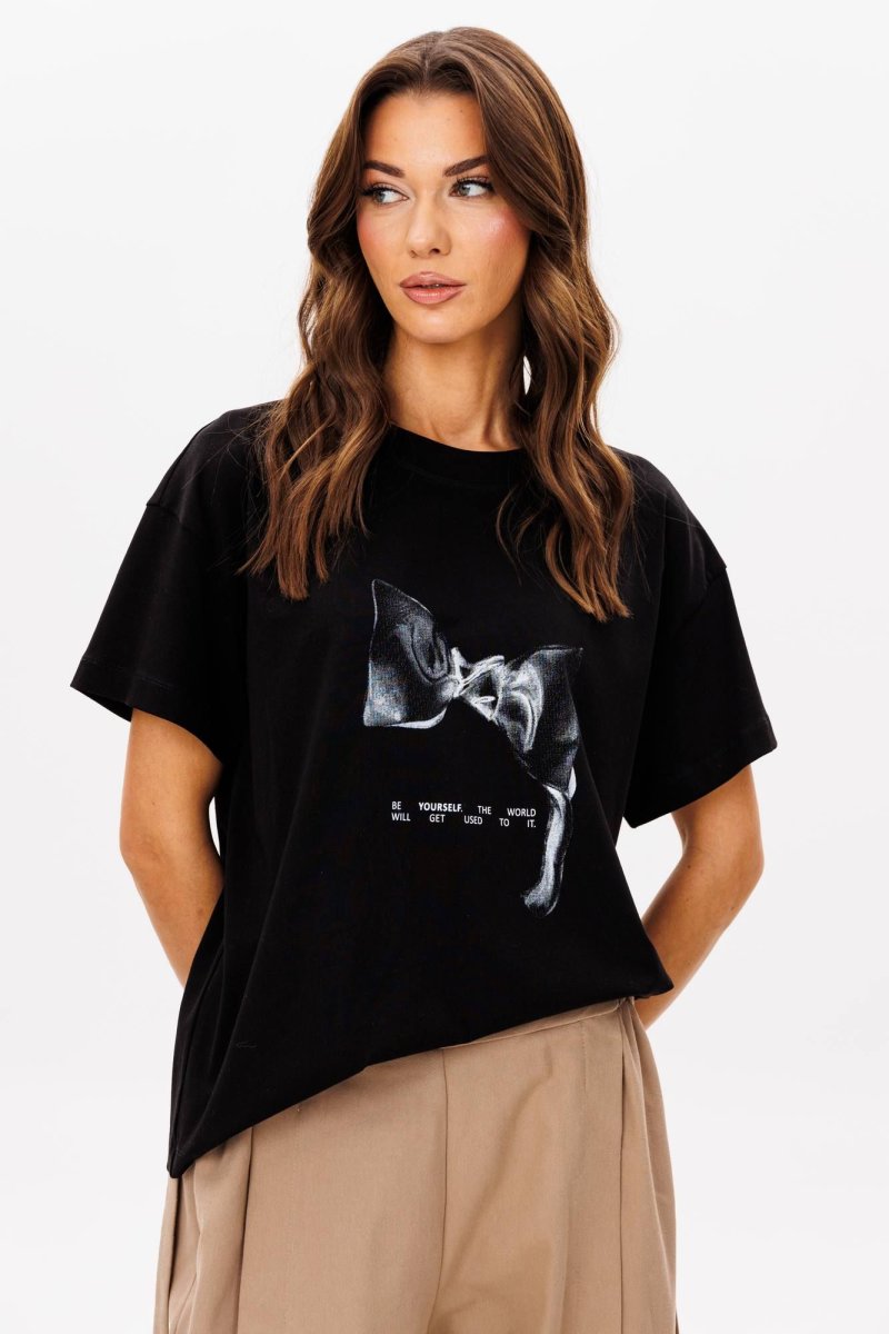 Базовые футболки - это конечно хорошо, но что делать, если хочется привнести в образ яркости, иронии и немного артистизма? Лучший способ выразить себя - выбрать вариант с классным говорящим принтом. Футболка классического кроя с втачным рукавом. Длина футболки около 60 см. Длина рукава около 15 см.