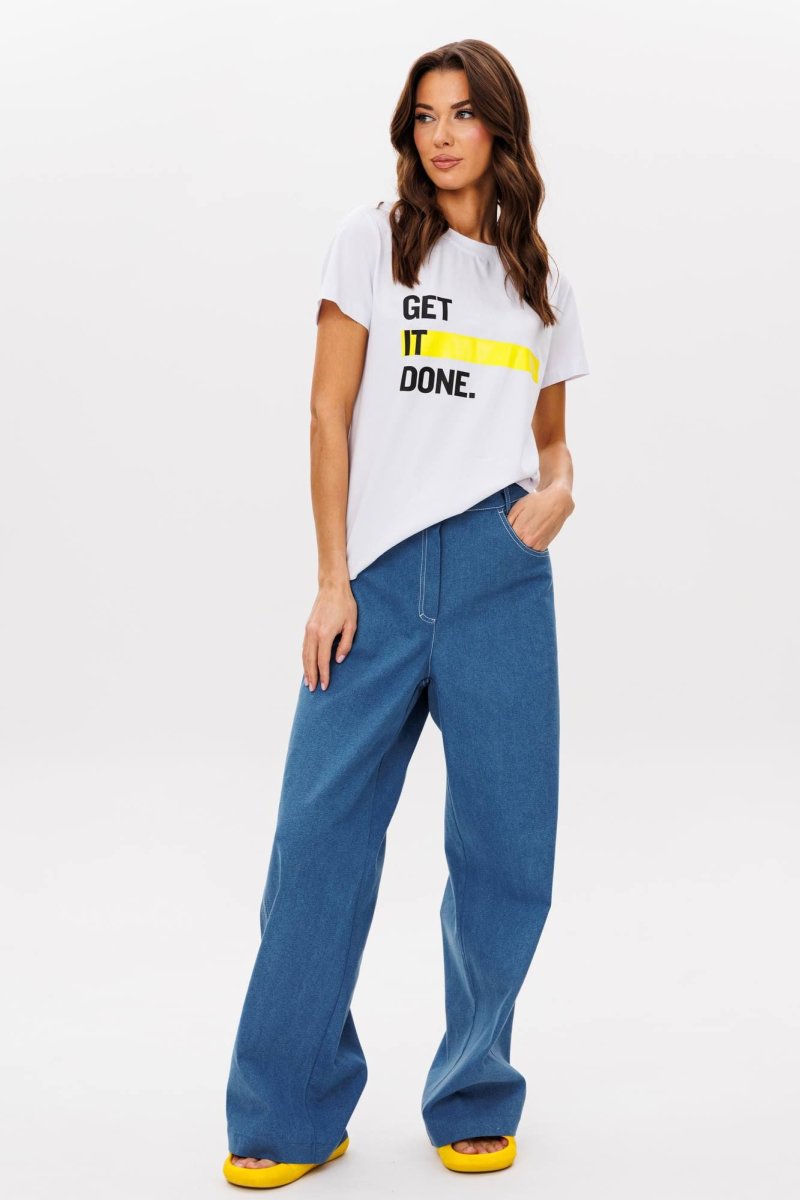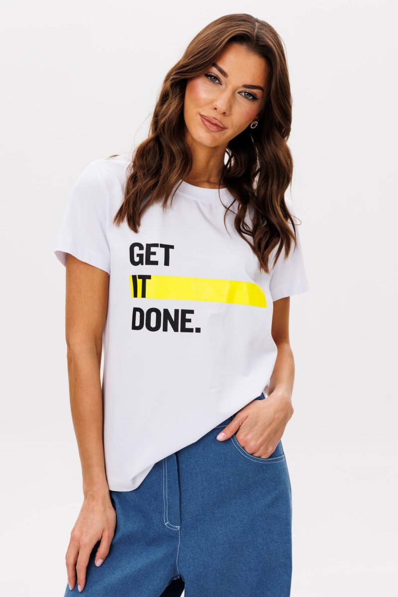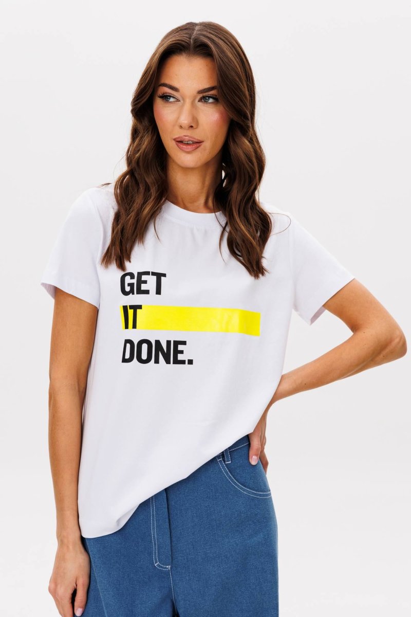 Базовые футболки - это конечно хорошо, но что делать, если хочется привнести в образ яркости, иронии и немного артистизма? Лучший способ выразить себя - выбрать вариант с классным говорящим принтом. Футболка классического кроя с втачным рукавом. Длина футболки около 60 см. Длина рукава около 15 см.
