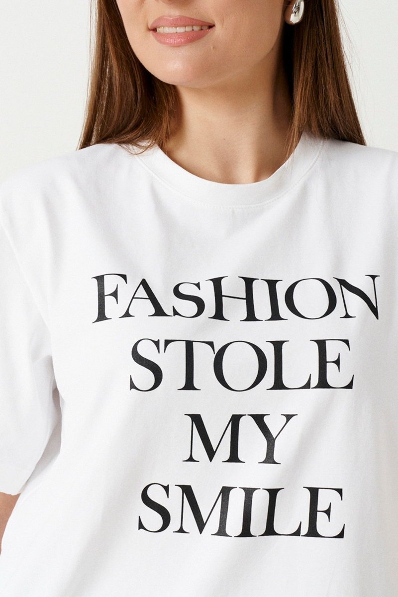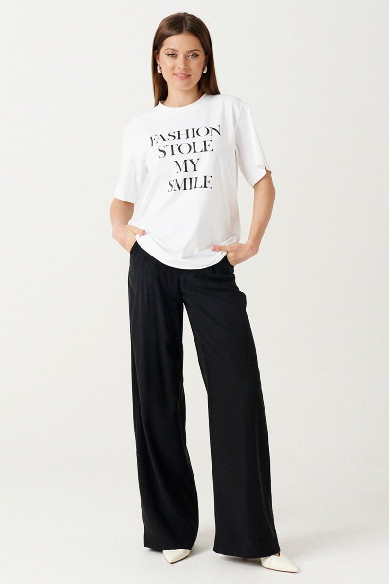 Футболка женская прямого кроя выполнена из натурального полотна. Характеристики: Прямой крой, короткий цельнокроеный рукав. Горловина круглая. По переду дизайнерский принт. Длина классическая.