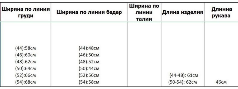 Размеры: 44, 46, 50, 52, 54