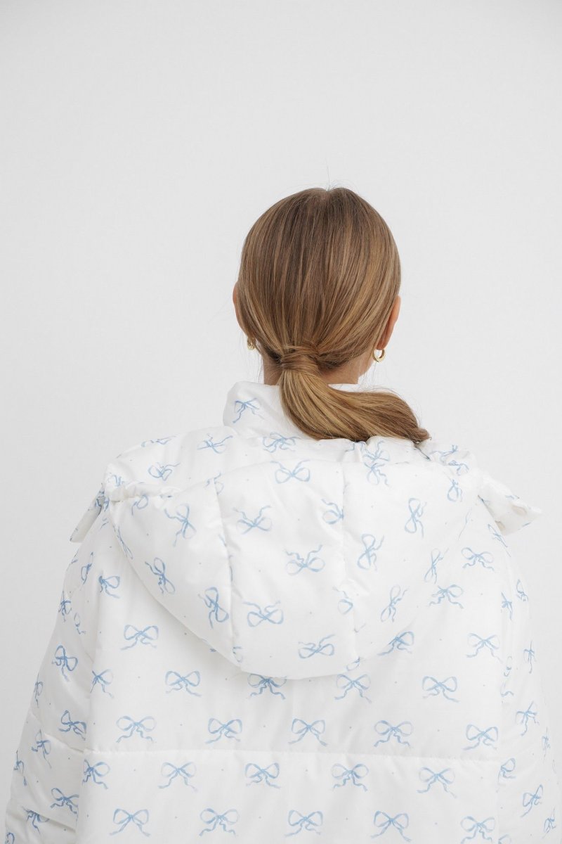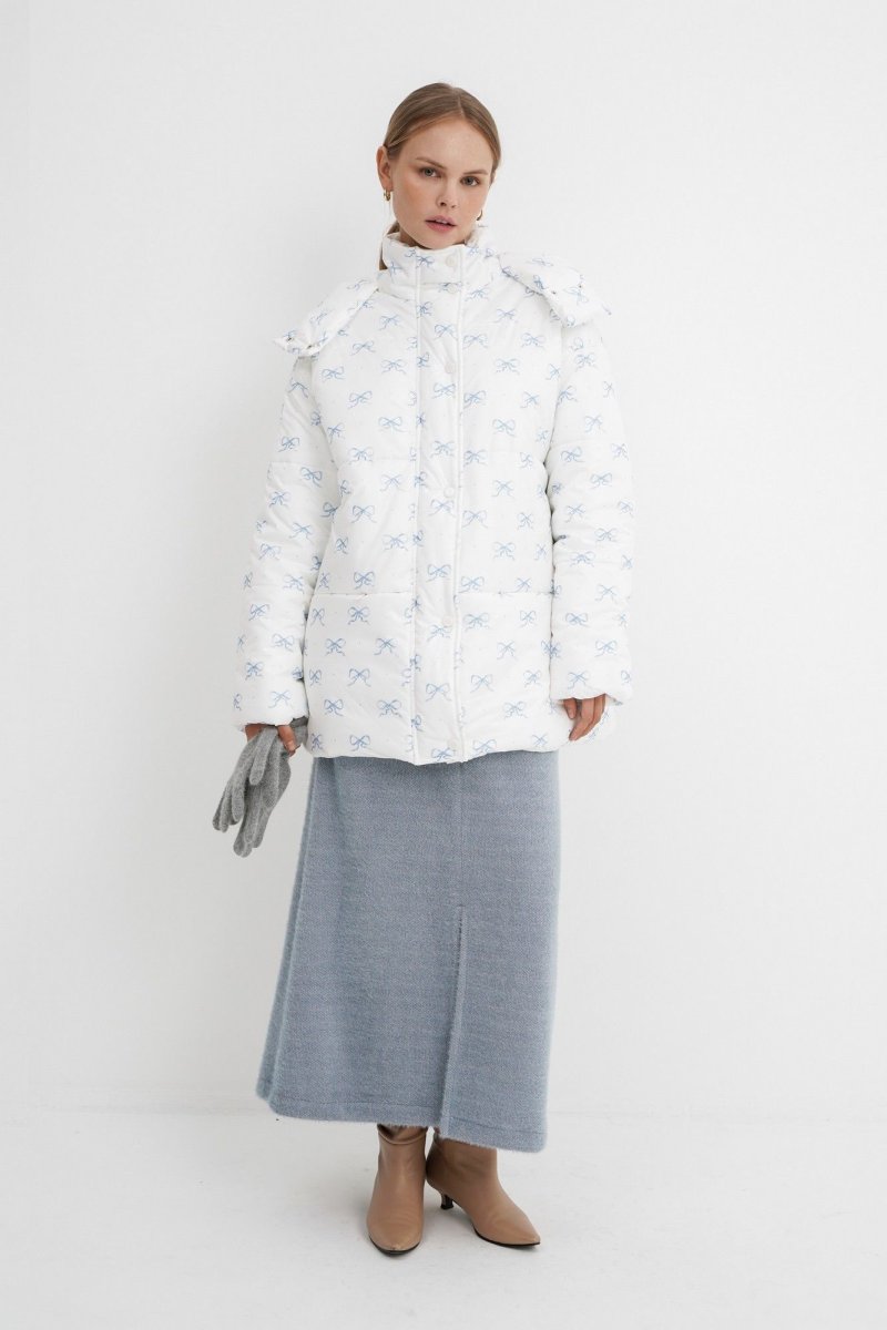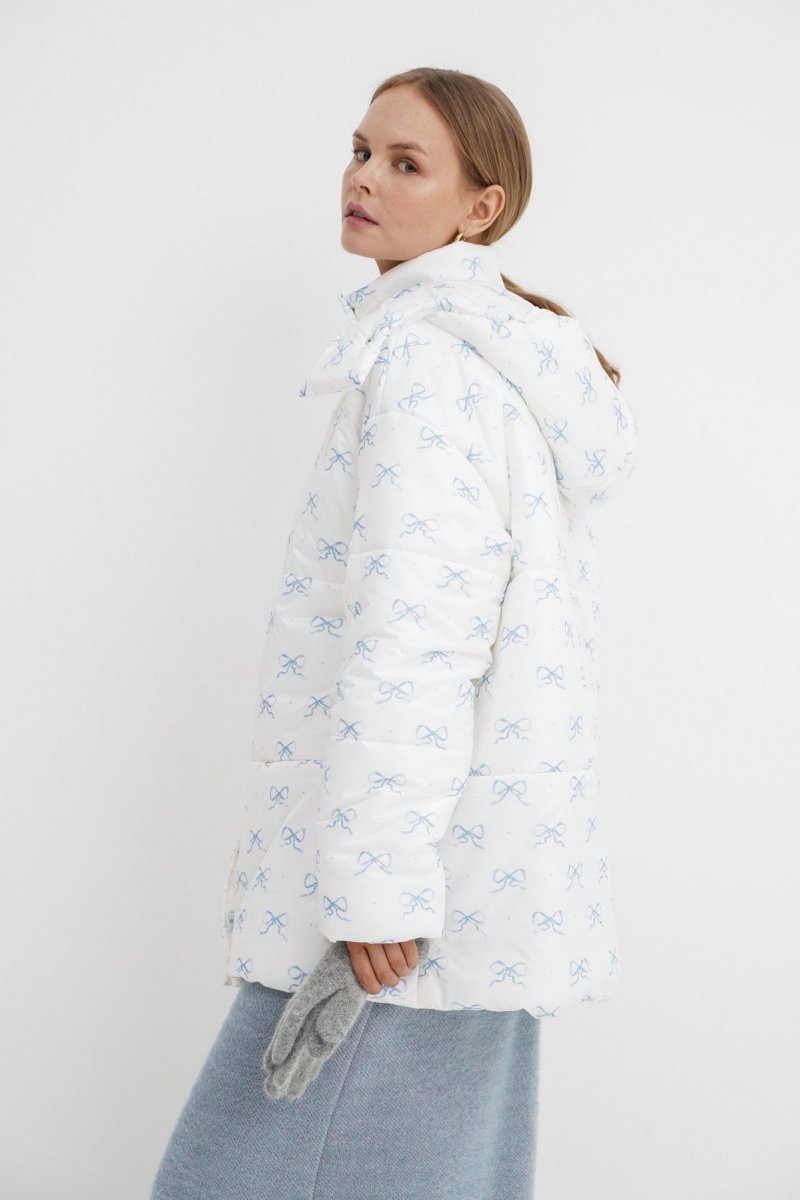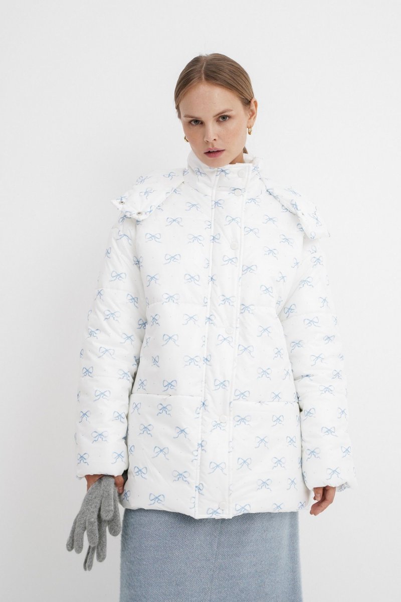 Стеганая оверсайз куртка с принтом.