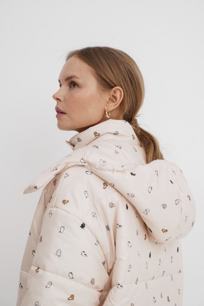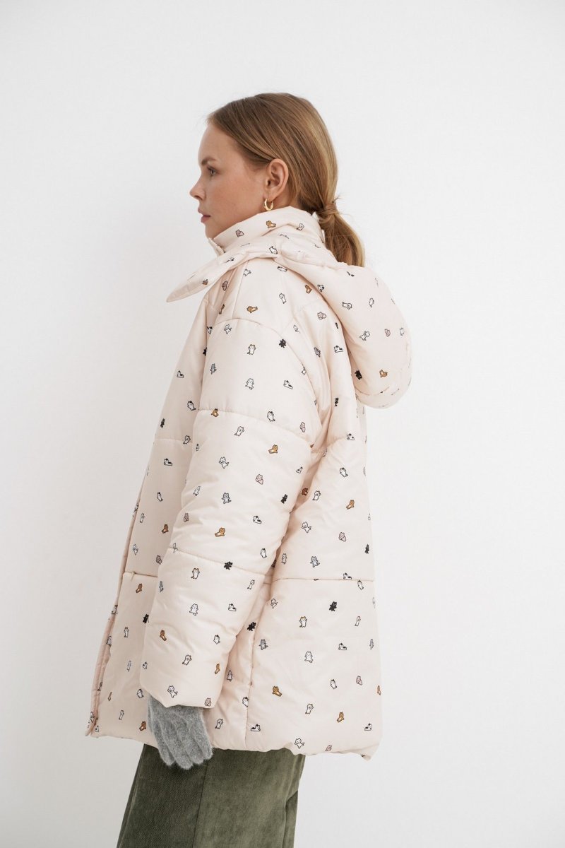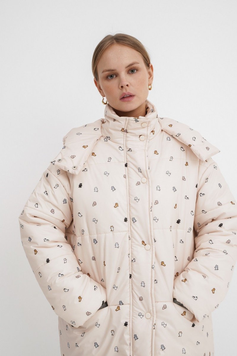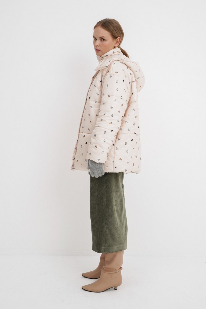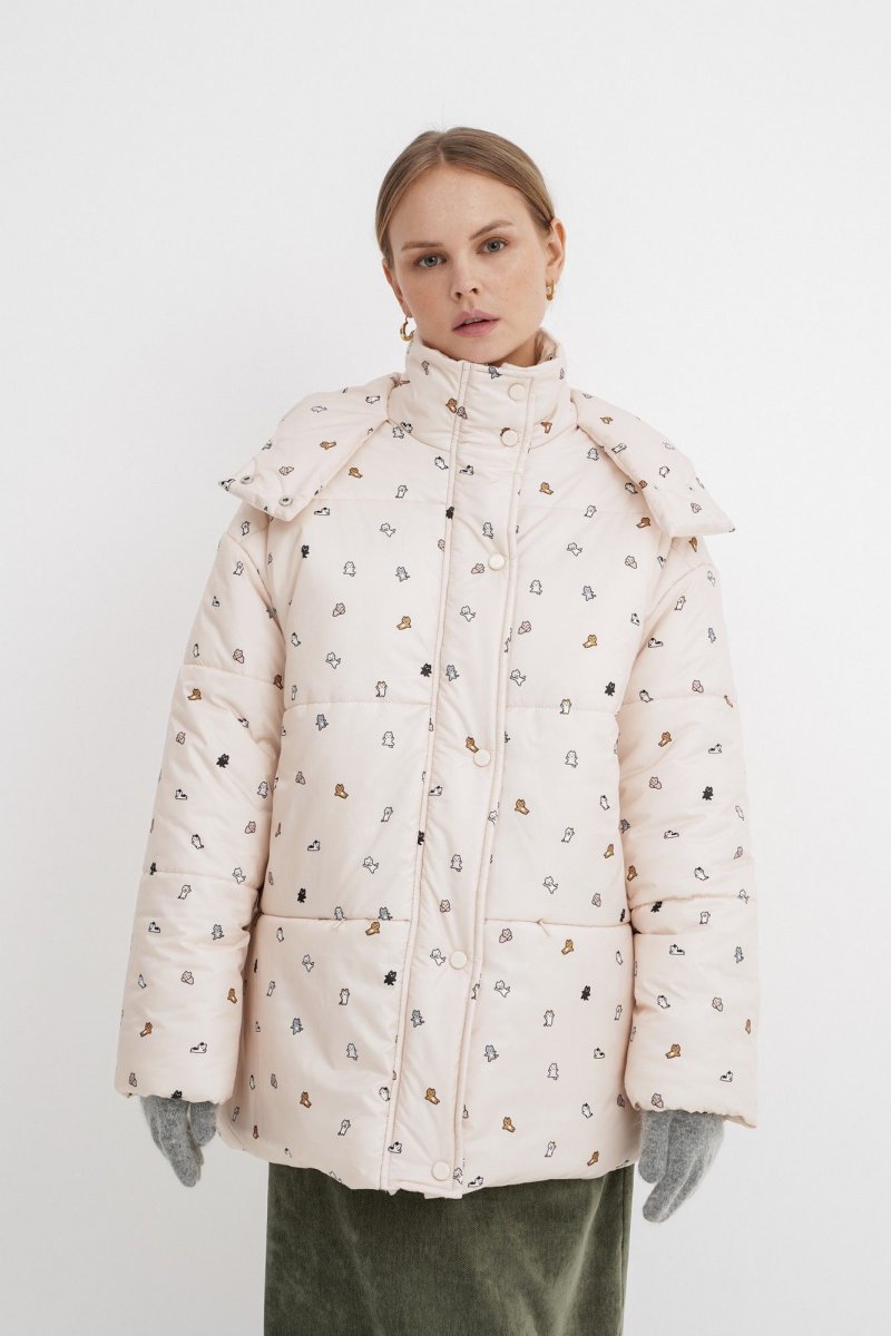 Стеганая оверсайз куртка с принтом.