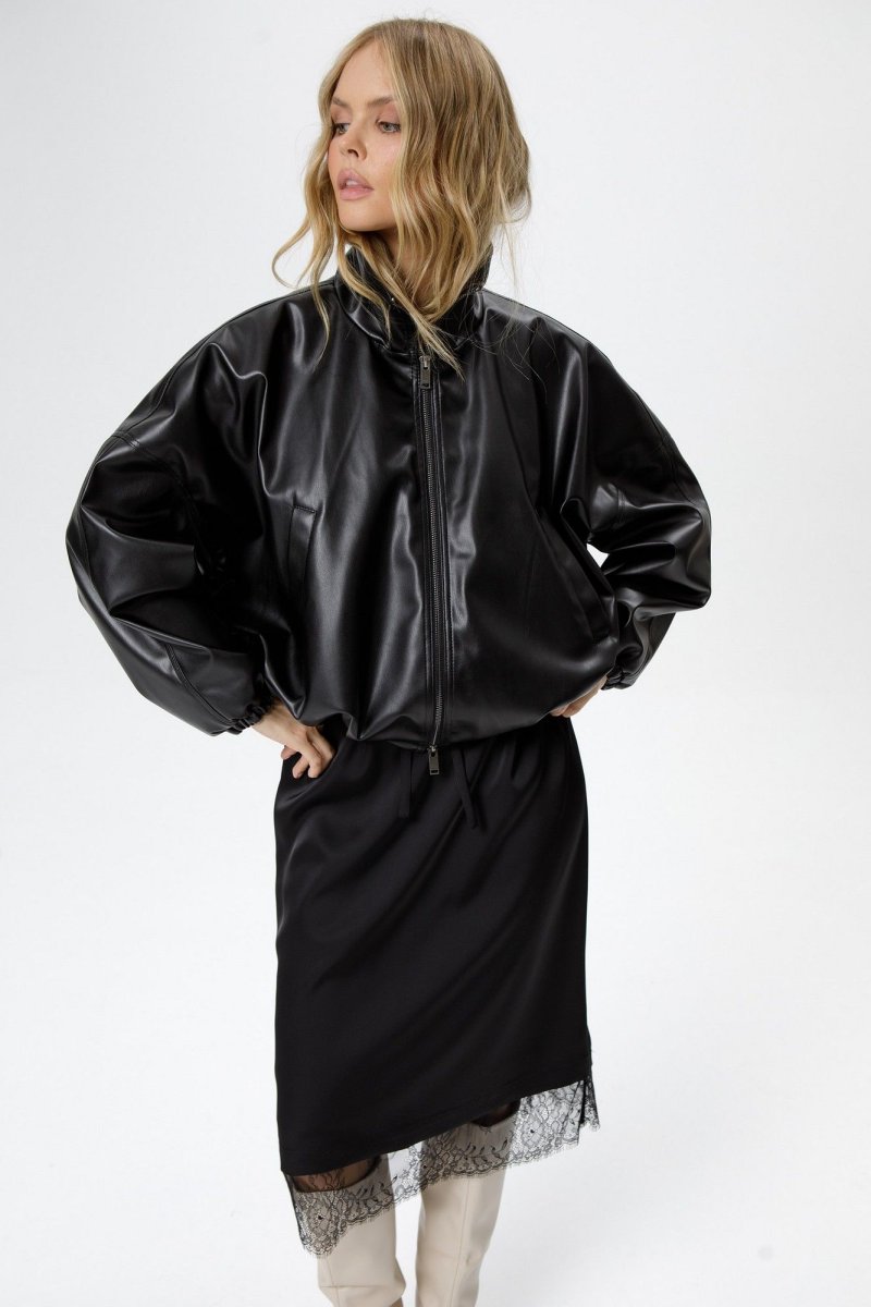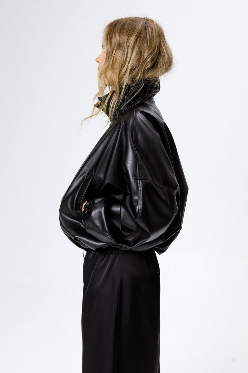 Укороченная куртка бомбер из экокожи.