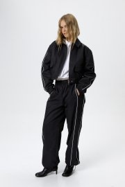 Укороченная спортивная куртка-бомбер с кантами.