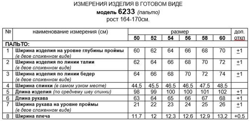 Длина (по среднему шву спинки) = 98-102 см. (+1см.)