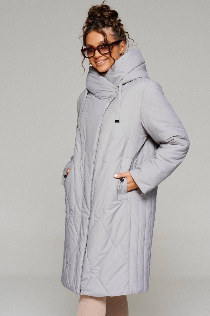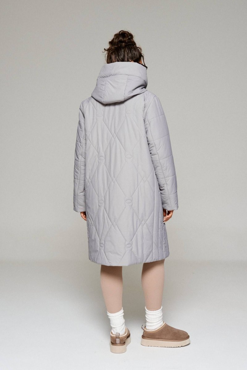 Пальто выполнено из стёганной, достаточно прочной и приятной на ощупь влагостойкой, полиэфирной ткани; на синтетической подкладке. Лёгкий утеплитель из холлофайбера 150 г/м.кв.; подходит для холодной осени и весны. Изделие рассчитано на температурный режим от +5 до -10 градусов.