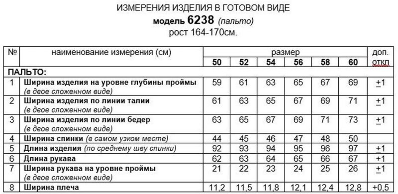 Таблица размеров