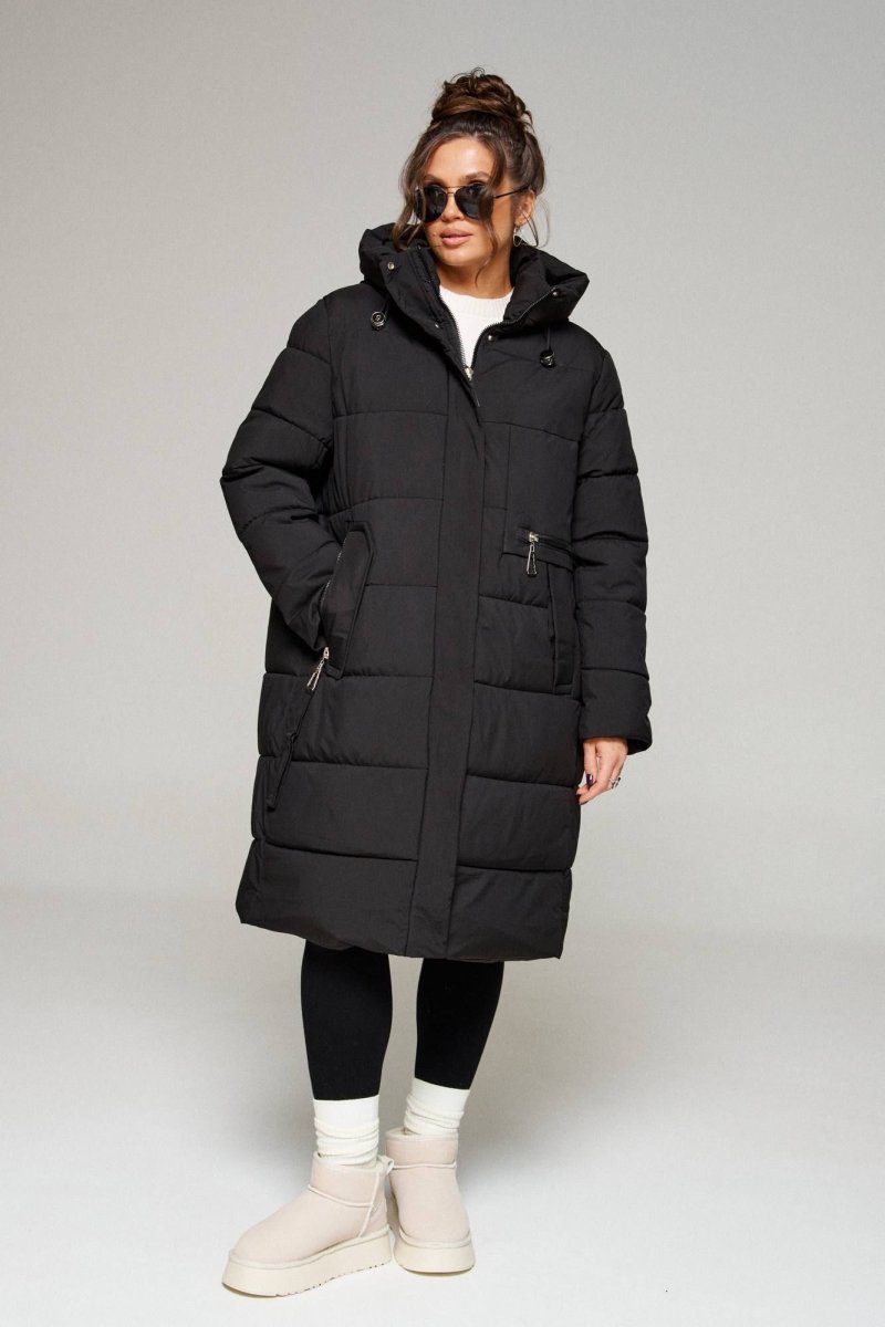 Утепленное, стеганое пальто прямого силуэта для тех, кто ценит комфорт и практичность. Это идеальное сочетание современных материалов и безупречного кроя. Лёгкое, удобное и теплое пальто подходит для зимних образов, сохраняя в себе все необходимые качества соответствующего изделия. Сдержанное, расслабленное, не сковывающее движений, универсального цвета станет незаменимой вещью в гардеробе. Пальто выполнено из прочной, влагостойкой и приятной на ощупь полиэфирной ткани; на синтетической подкладке. Утеплитель холлофайбер 200 г/м. кв. сохраняет тепло в холодное время года. Изделие рассчитано на температурный режим от -10 до -20 градусов. Модель прямого силуэта, базового кроя; предназначена для повседневного использования. Перед с декоративной вставкой на нефункциональную застежку-молнию и прорезными боковыми карманами, один из которых имеет застежку на магнит, а другой на молнию с декоративным хлястиком. Застежка центральная на двустороннюю молнию под ветрозащитной планкой с кнопками. Молния от верхнего края капюшона не доходит до низа изделия на 10 см. Спинка без среднего шва, с отрезными бочками, переходящими на перед. Рукав длинный втачной двухшовный. По низу внутри рукава предусмотрена дополнительная вставка в виде притачной трикотажной манжеты. Воротник стойка прилегает к шее и создает особое удобство при носке. Капюшон закрытого типа, притачной по горловине. По периметру капюшона протянут шнур в цвет изделия с декоративными фиксаторами. Низ изделия ровный. Подкладка гладкая, слева предусмотрен внутренний карман. С учетом плюсовых прибавок подходит на рост 170см.