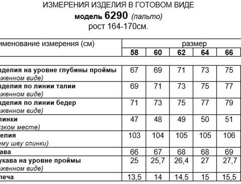 Таблица размеров