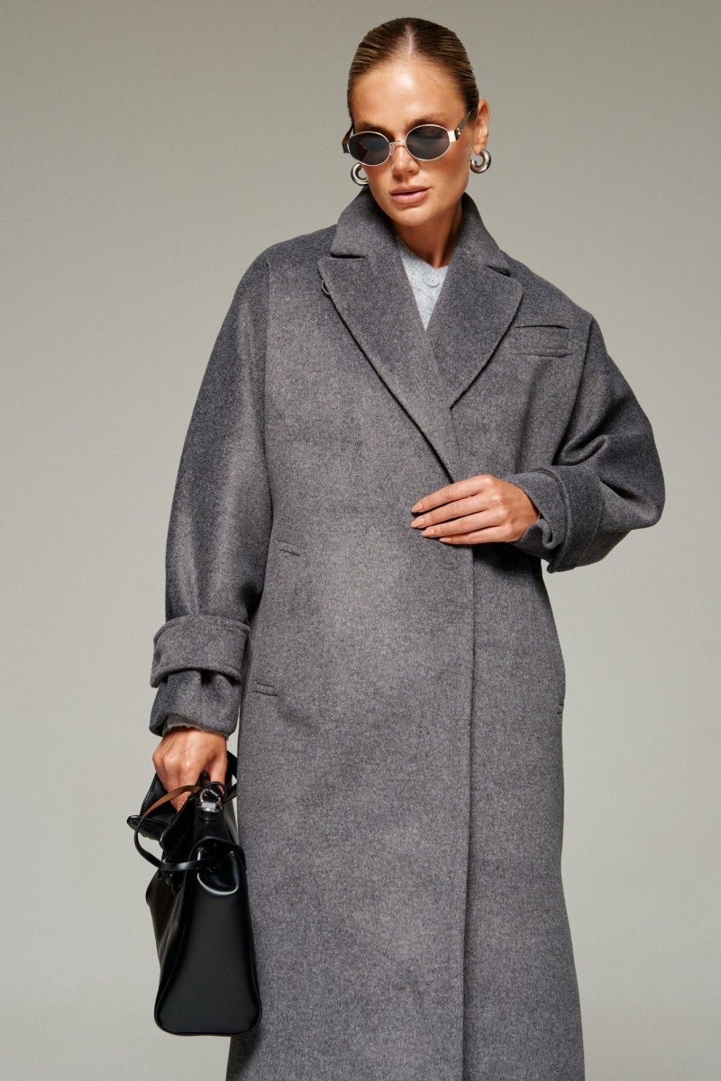 Пальто выполнено из шерстяной ткани, которая обеспечивает теплоизоляцию и защиту от ветра и влаги, подходит для межсезонья и теплой зимы. Двубортное, на подкладке. Изделие рассчитано на температурный режим от +10 до -5 градусов. Модель прямого силуэта актуального покроя «летучая мышь»; предназначена для повседневного использования.