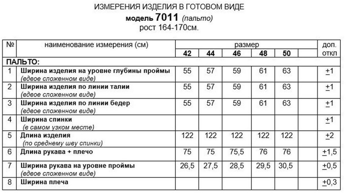 Таблица размеров