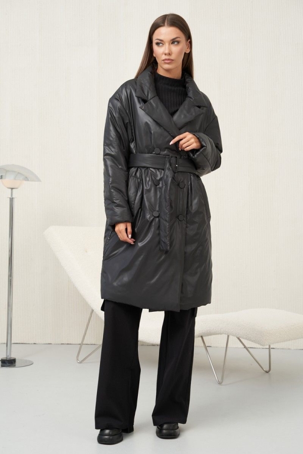 Современный женский осенний гардероб должен демонстрировать оригинальный подход и безупречный вкус своей обладательницы. Неотъемлемым элементом при создании такого аутфита является базовое пальто на синтепоне. Невероятно лёгкое и комфортное, свободного оверсайз-силуэта, втачного покроя с заниженной линией плеча. Застёжка центральная, двубортная, воротник классический английский. Полочки с прорезными карманами с листочкой. Рукав расширенный в верхней части. Модель дополнена съёмным поясом с эффектной обтяжной пряжкой. Утеплитель синтепон 200 гр/м. Длина пальто около 102 см, длина рукава с плечом около 74 см.