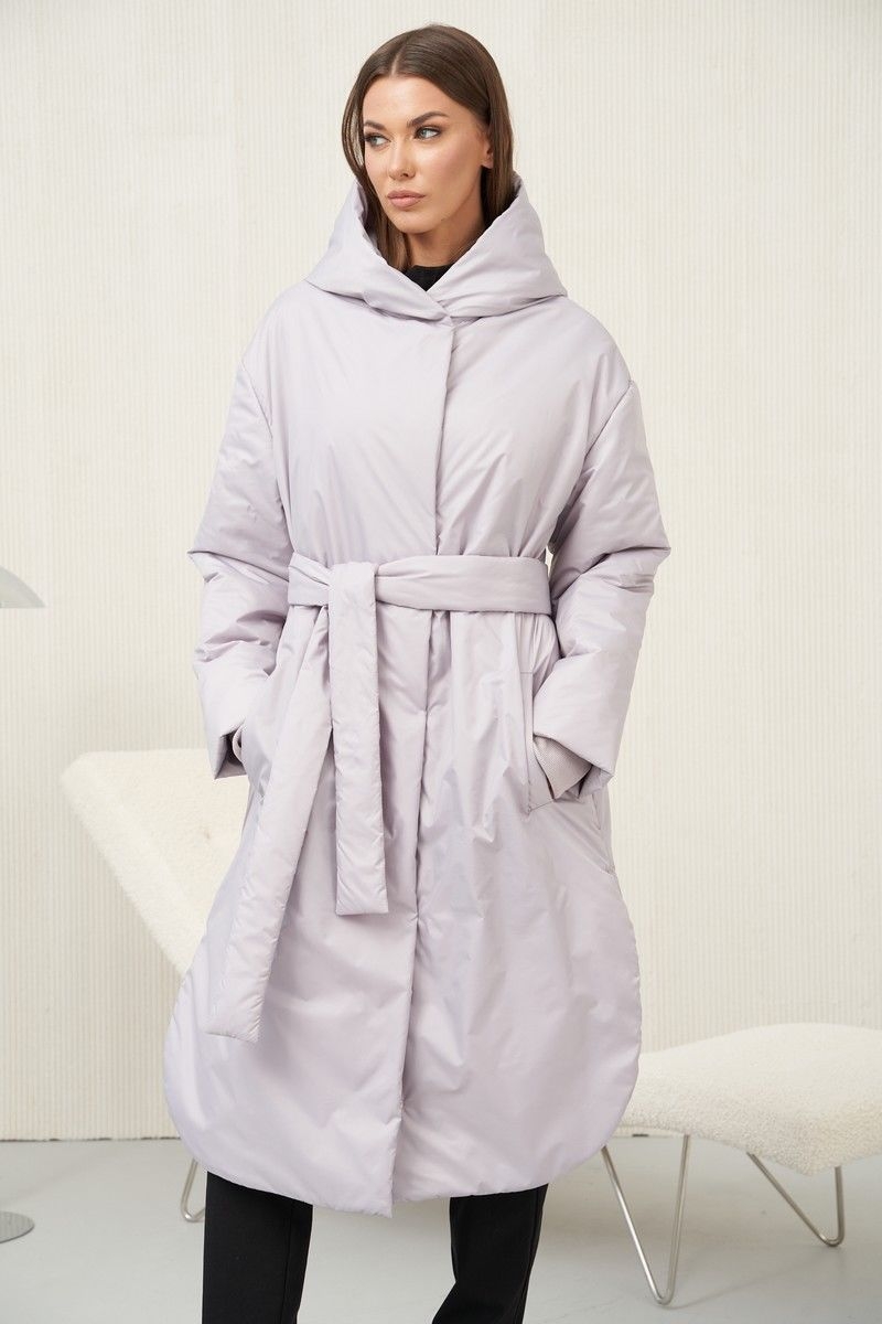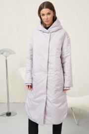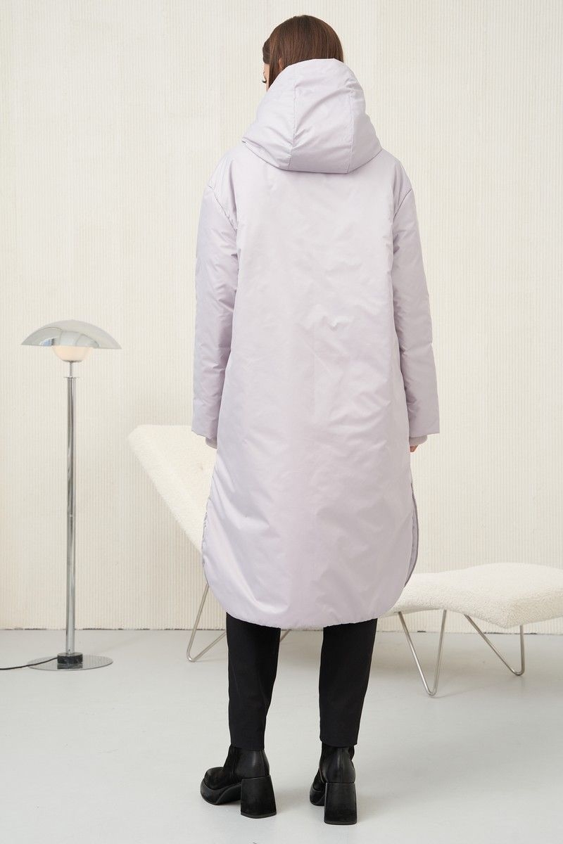 Свободный оверсайз силуэт, втачной покрой на заниженной линии плеча, центральная застёжка на тесьму-молнию и потайные кнопки, капюшон. Полочки с прорезными карманами с листочкой, по боковым швам фигурные разрезы. По низу рукава трикотажный манжет.