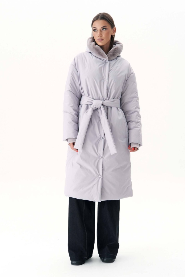 Элегантное, женственное и эффектное. Это пальто было популярно и в прошлые сезоны, но в коллекции 24-25 г. занимает одно из первых мест. Современный, свободный силуэтс заниженной линией плеча, втачной рукав, расширенный в области оката, центральная застёжка на тесьму молнию и цельнокроённую с полочкой планку, растёгивающуюся на отдельные кнопки, воротник-капюшонс отделкой мехом. Полочка с прорезным карманом с листочкой. Рукав с напульсником и уютной трикотажной манжетой. Модель дополнена съемным поясом. Наполнитель 240 гр/м2 ISO SOFT. Длина пальто около 105 см Длина рукава с плечом около 76 см