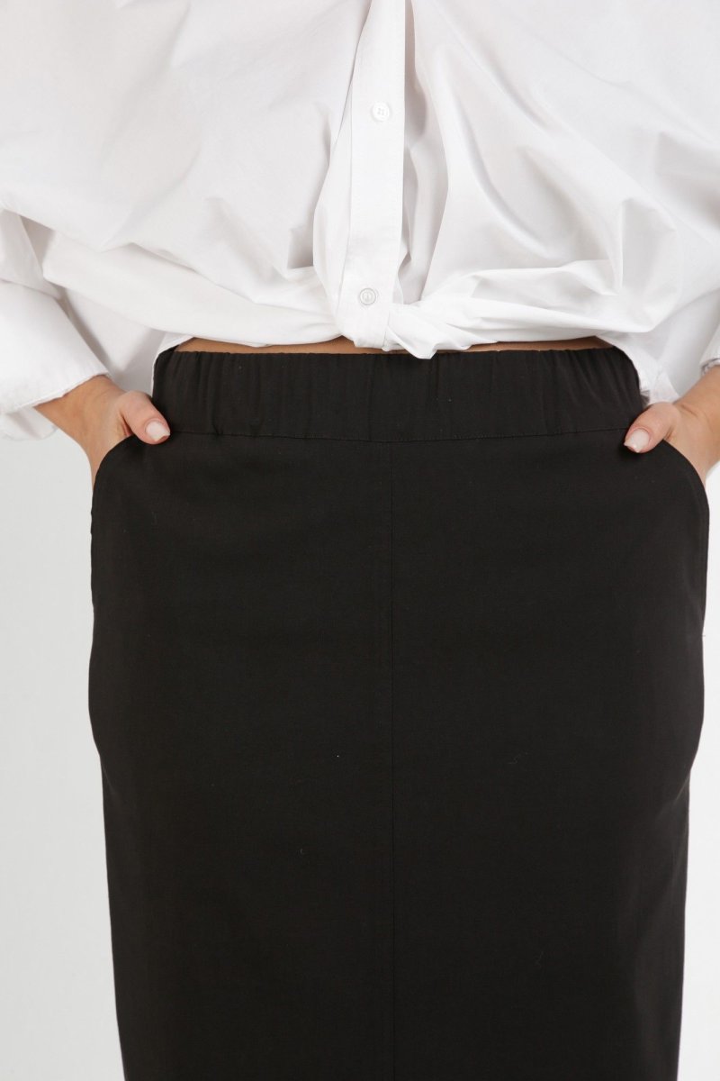 Изделие тянется, благодаря чему обеспечивает идеальную посадку и высокий уровень комфорта. Юбка с высокой талией, пояс на широкой резинке. Средний шов по переду изделия отстрочен, что дополнительно вытягивает фигуру и удлиняет ноги. По бокам расположены удобные глубокие отстроченные карманы. Спинка со средним швом. Элегантный высокий разрез (37 см) усиливает эффект стройности и создает комфорт при движении. Классическая юбка макси с высокой талией отлично сочетается как с объёмными теплыми вещами, так и с классической офисной базой.