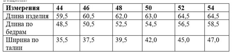 Размеры: 50, 52, 54, 56, 58, 60, 62, 64