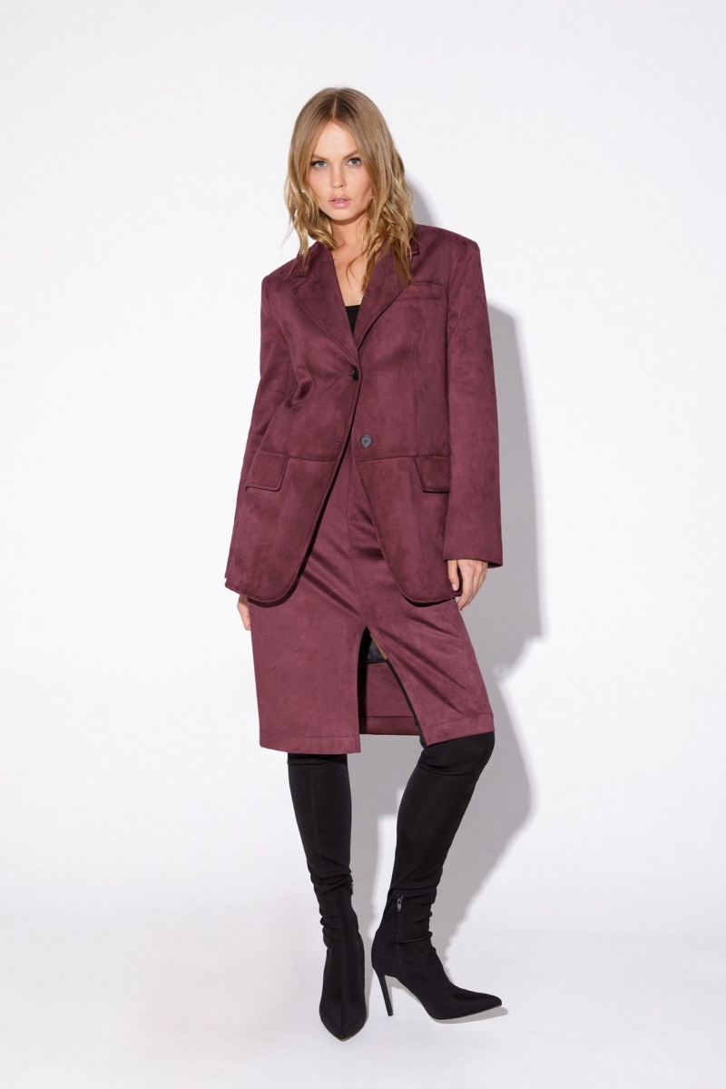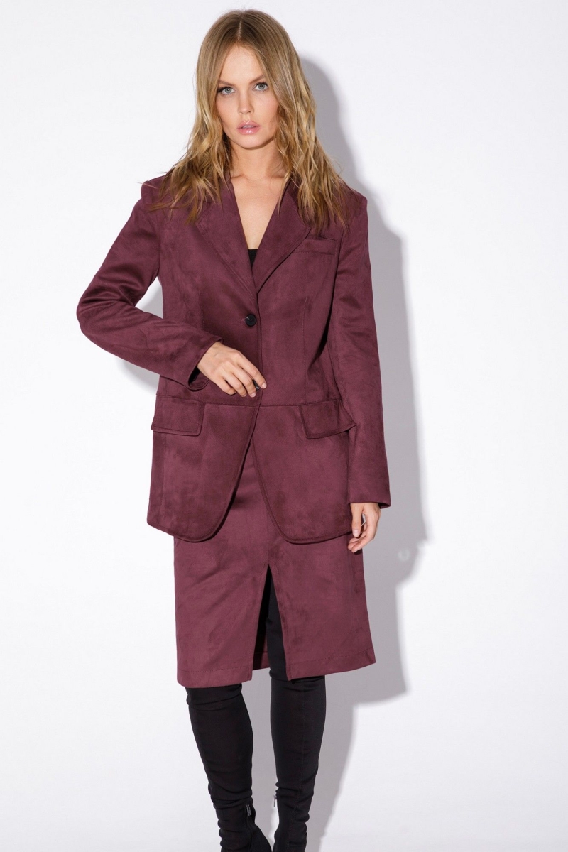 Прямая юбка «карандаш» с высоким разрезом. Детали: юбка на притачном поясе со шлевками, талиевые вытачки, боковые карманы, застежка на потайную молнию, на подкладке. Длина по боковому шву с поясом около 61 см в размерах 40-52 см