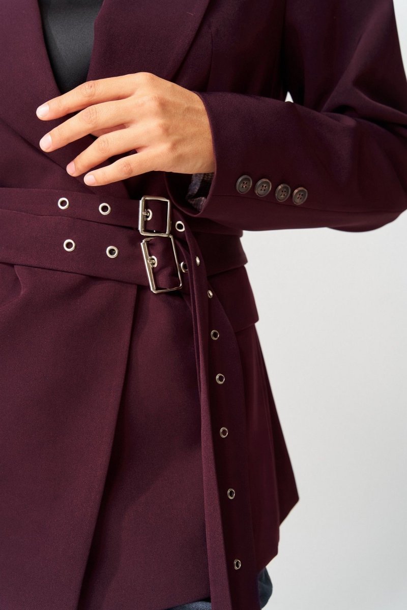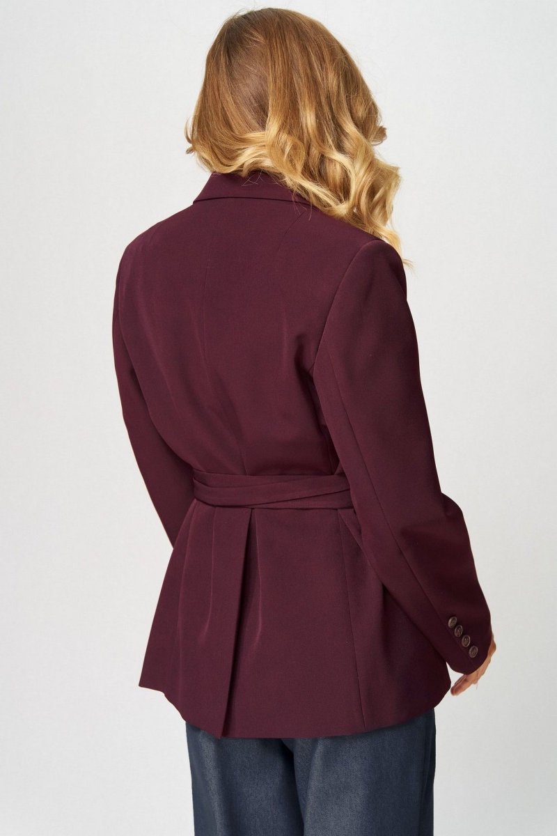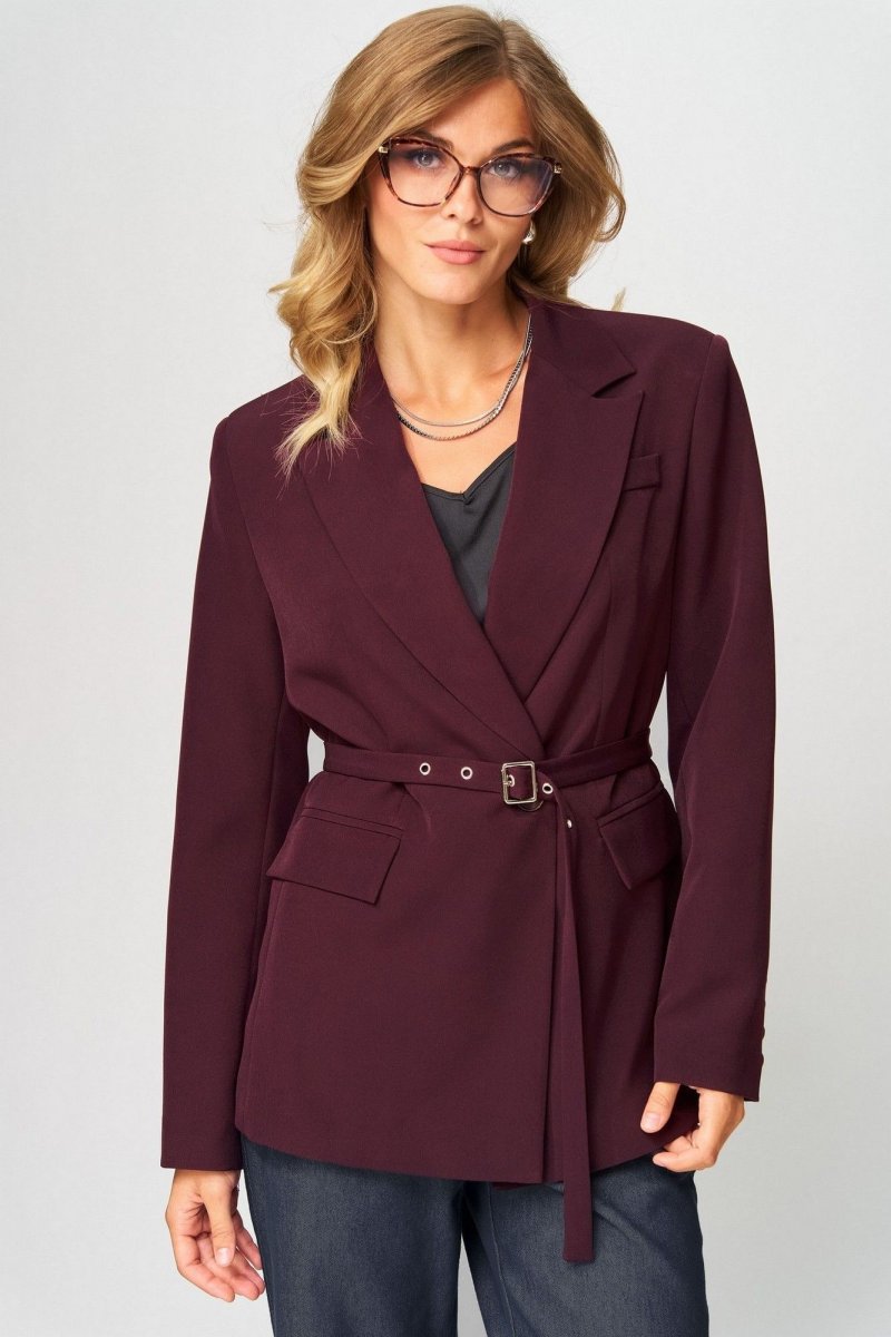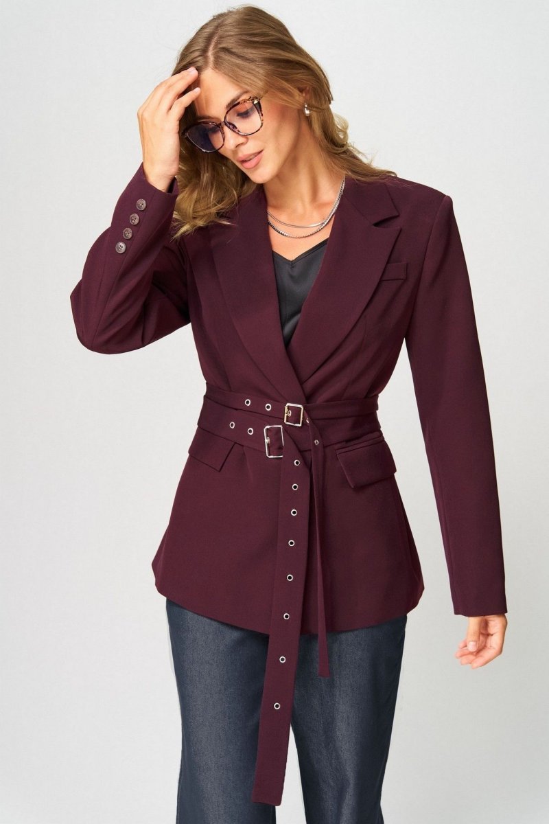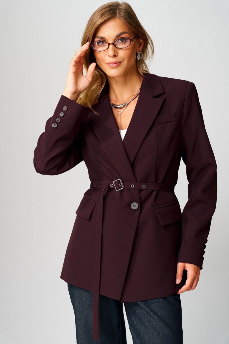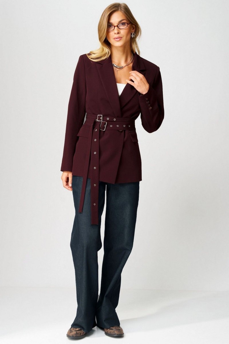 Жакет выполнен из костюмной ткани. Декор может отличаться от представленного на фотографии. 2 съемных пояса из основной ткани в комплекте.