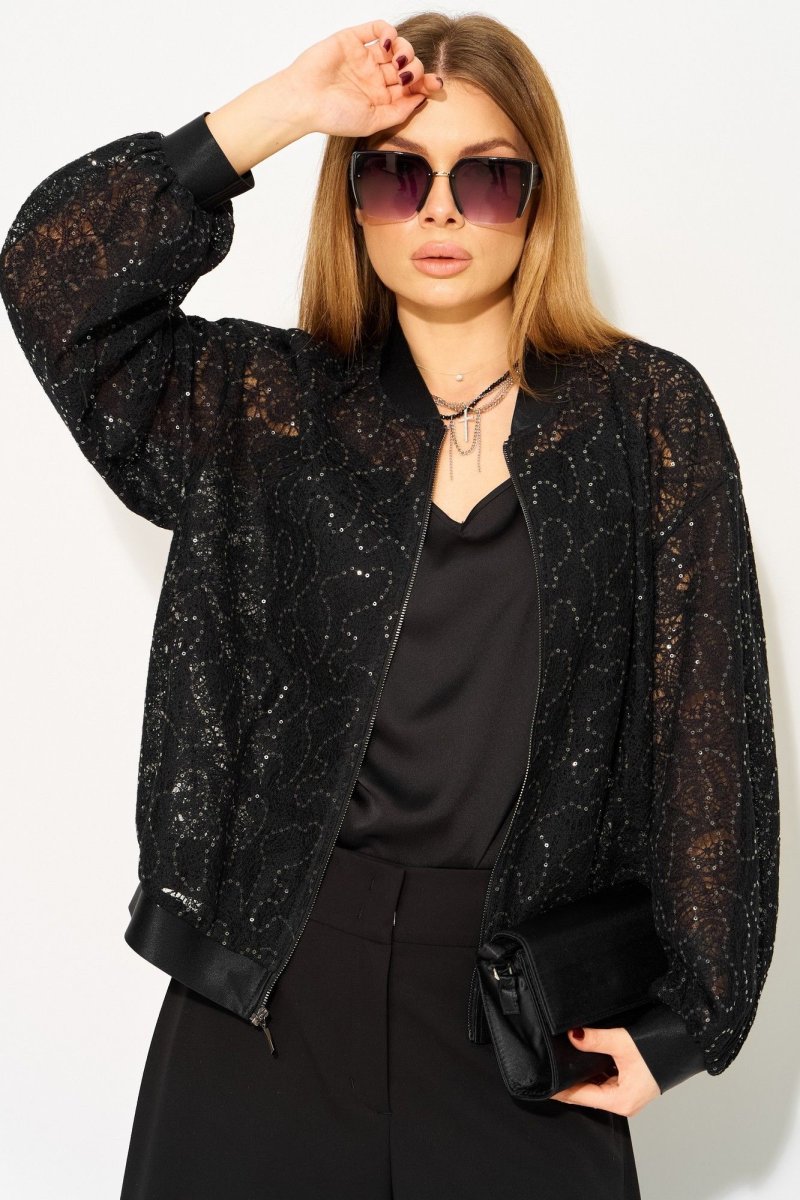 Нарядный жакет от LAIKONY свободного силуэта с пайетками.