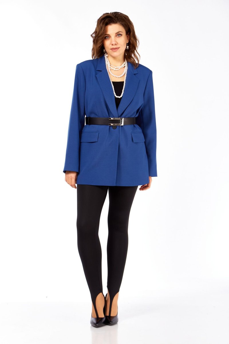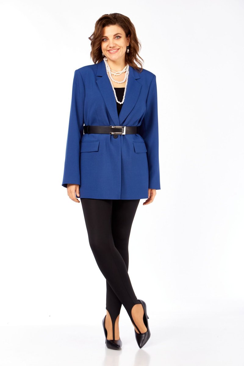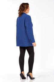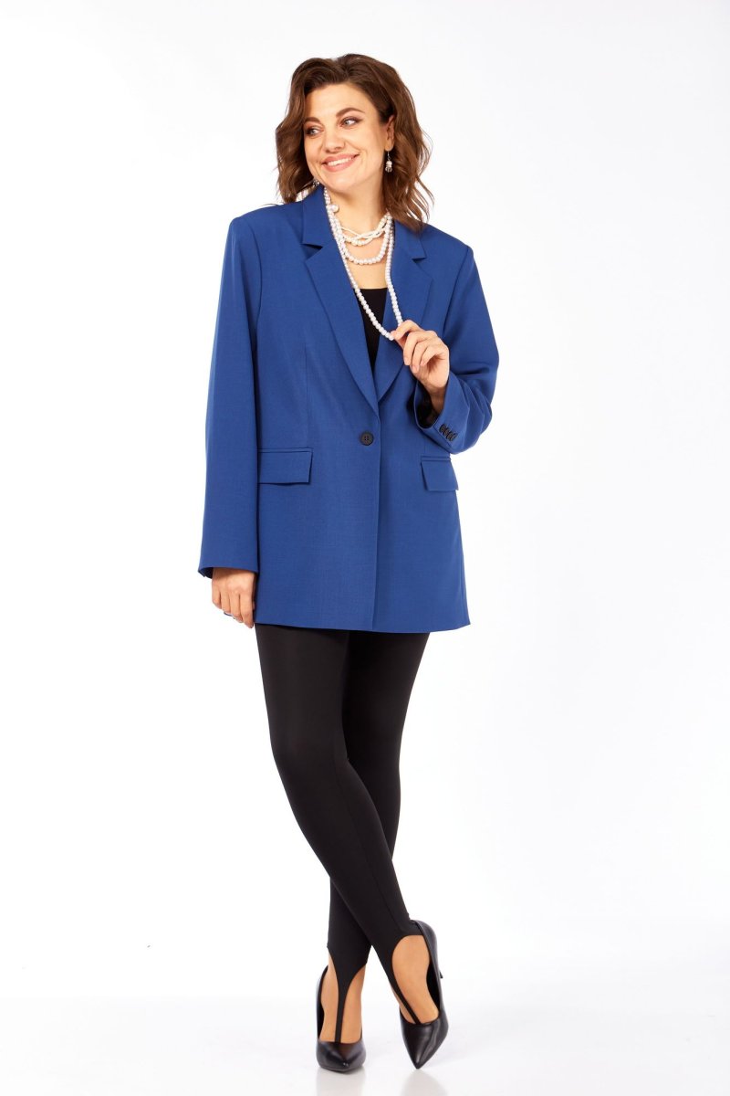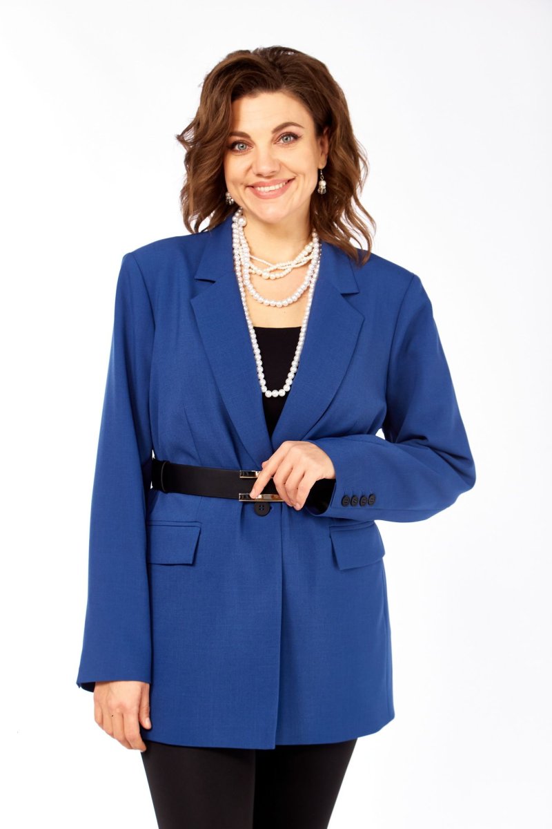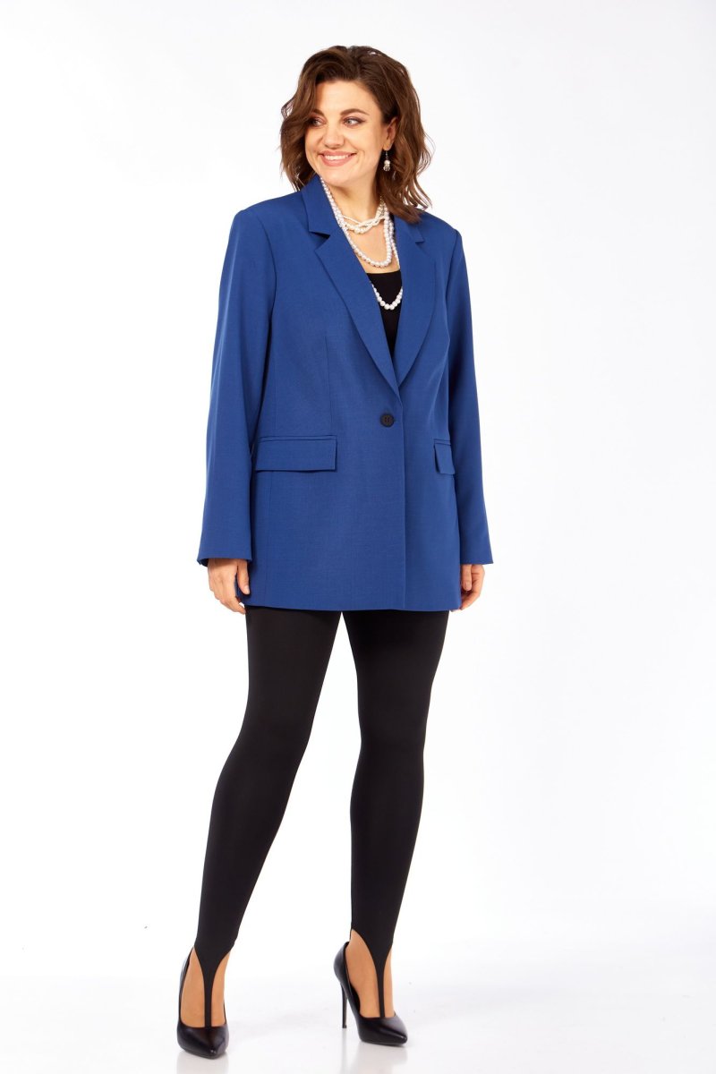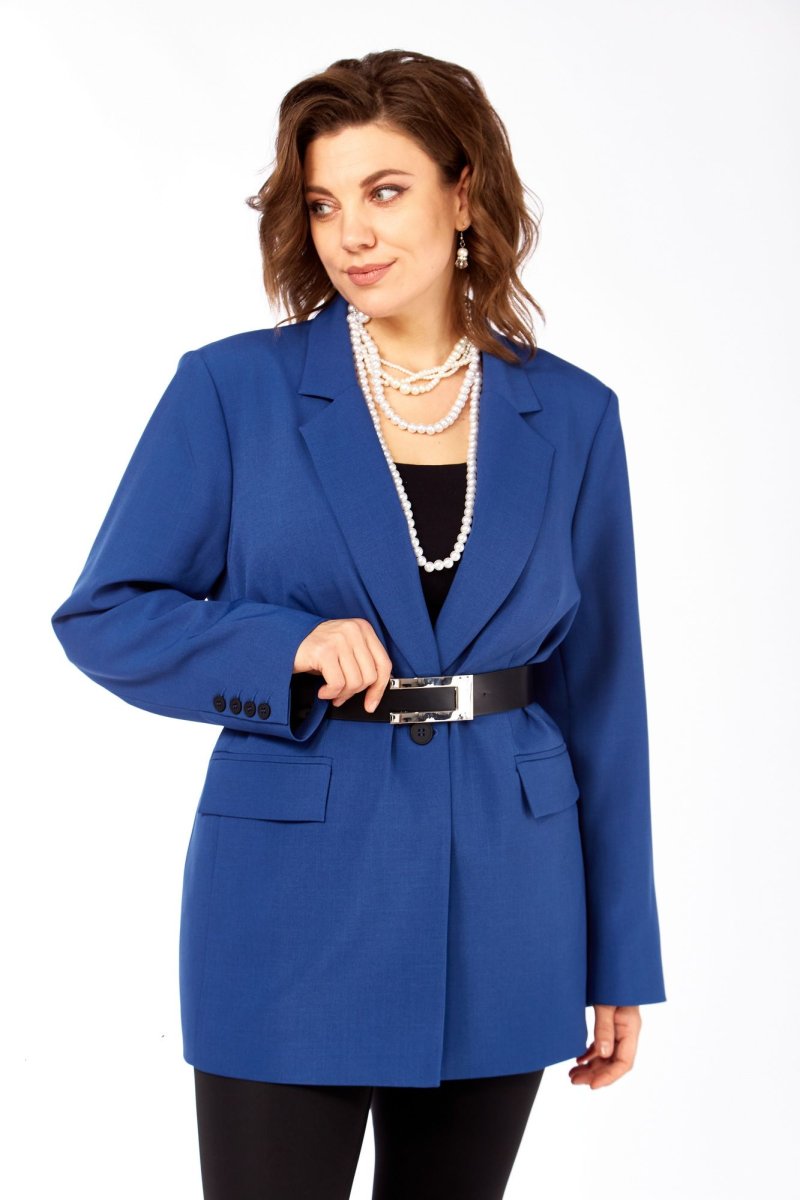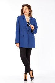 Стильный жакет прямого силуэта с пиджачным воротником, с застежкой на одну пуговицу. По переду карманы клапанами. Рукав длинный двухшовный со шлицей на четыре пуговицы.